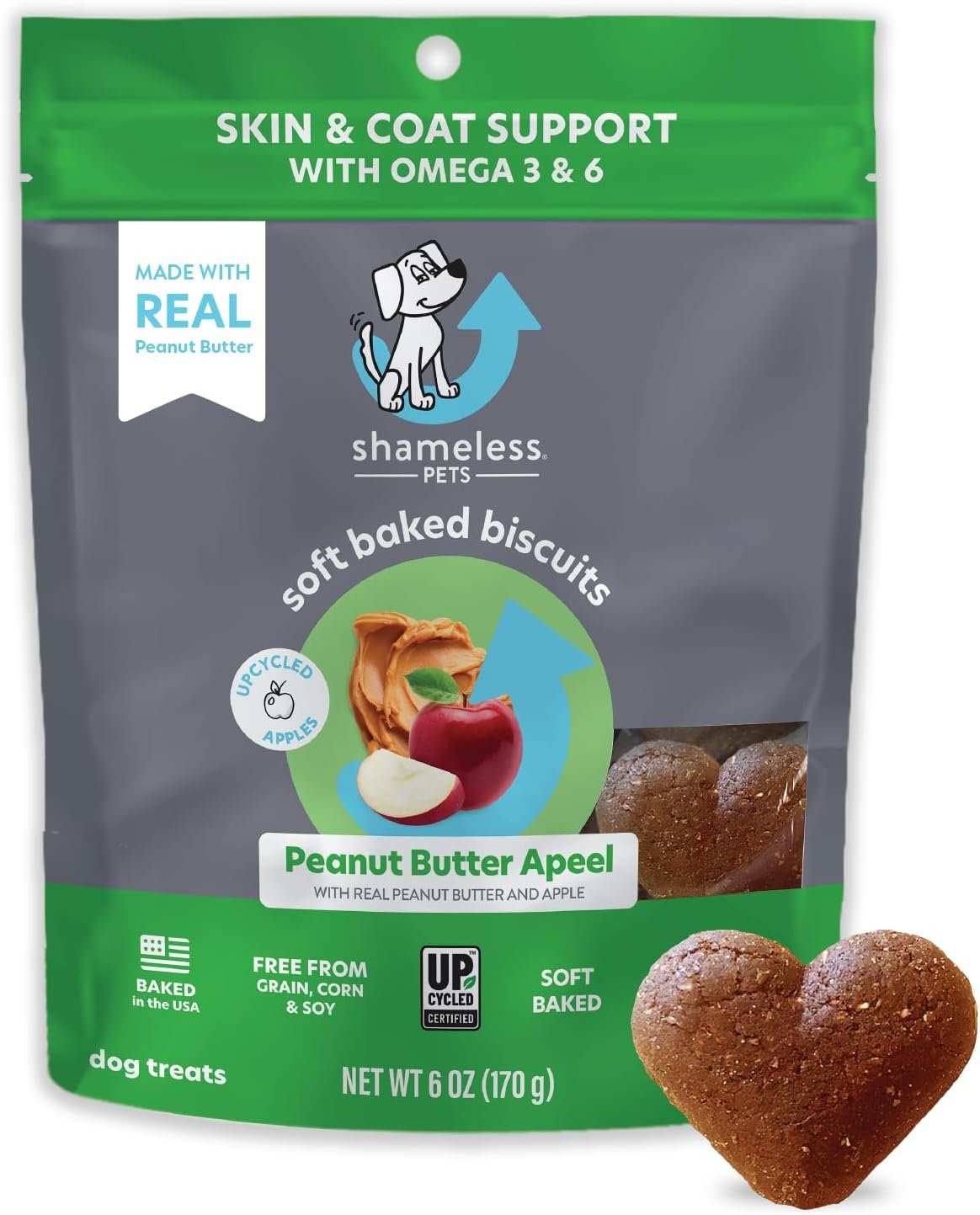 Shameless Pets Soft-Baked Dog Treats, Peanut Butter Apeel – Natural & Healthy Dog Chews for Skin & Coat Support with Omega 3 & 6 – Dog Biscuits Baked & Made in USA, Grain, Corn & Soy Free – 1-Pack