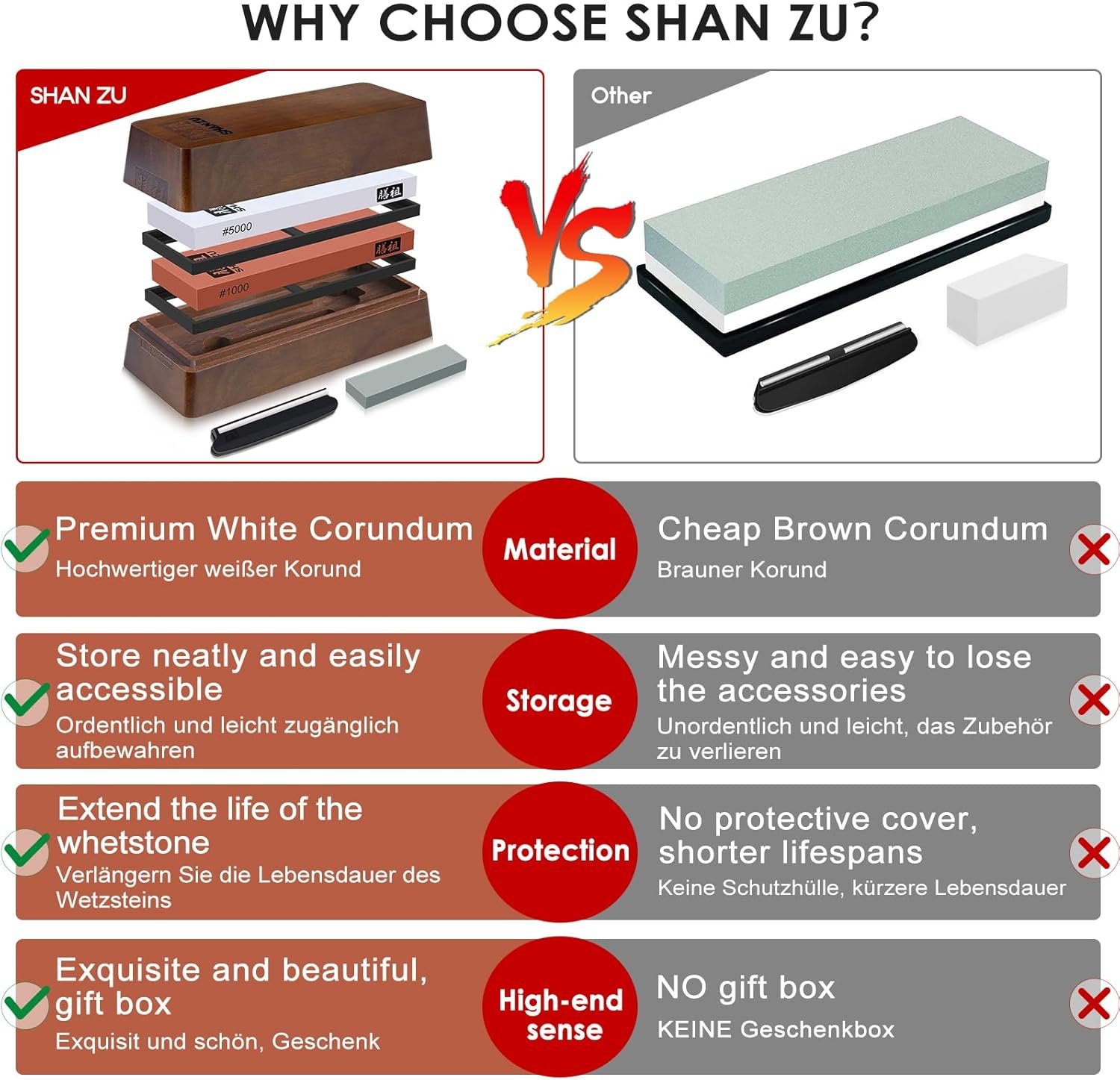 Be the first to review “SHAN ZU 2 Pcs Knife Sharpener Stone Set with Storage Box Whetstone Grit 1000/5000 Knife Sharpening Stone with Non-Slip Silicone Base and Angle Guide Whetstone Knife Sharpening Kit for Kitchen Knives”