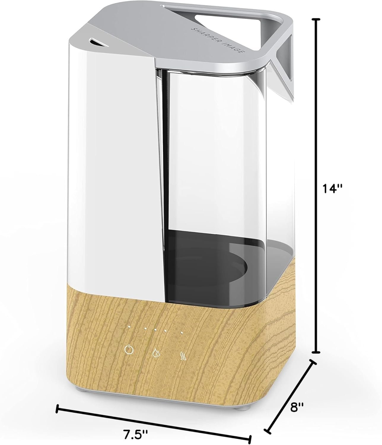 Sharper Image’s UHS2 Humidifier features a stylish faux woodgrain finish that will enhance any room. This humidifier is simple to use with easy touch controls and features three mist settings- low, medium or high and cool or warm mist. The UHS2 has a 1. 5-gallon water tank and is simple to fill using the integrated water tank handle and easily removable water tank cap. The flashing low water indicator light quickly alerts you when it’s time to refill the water tank. The UHS2 is a sleek addition to any space.