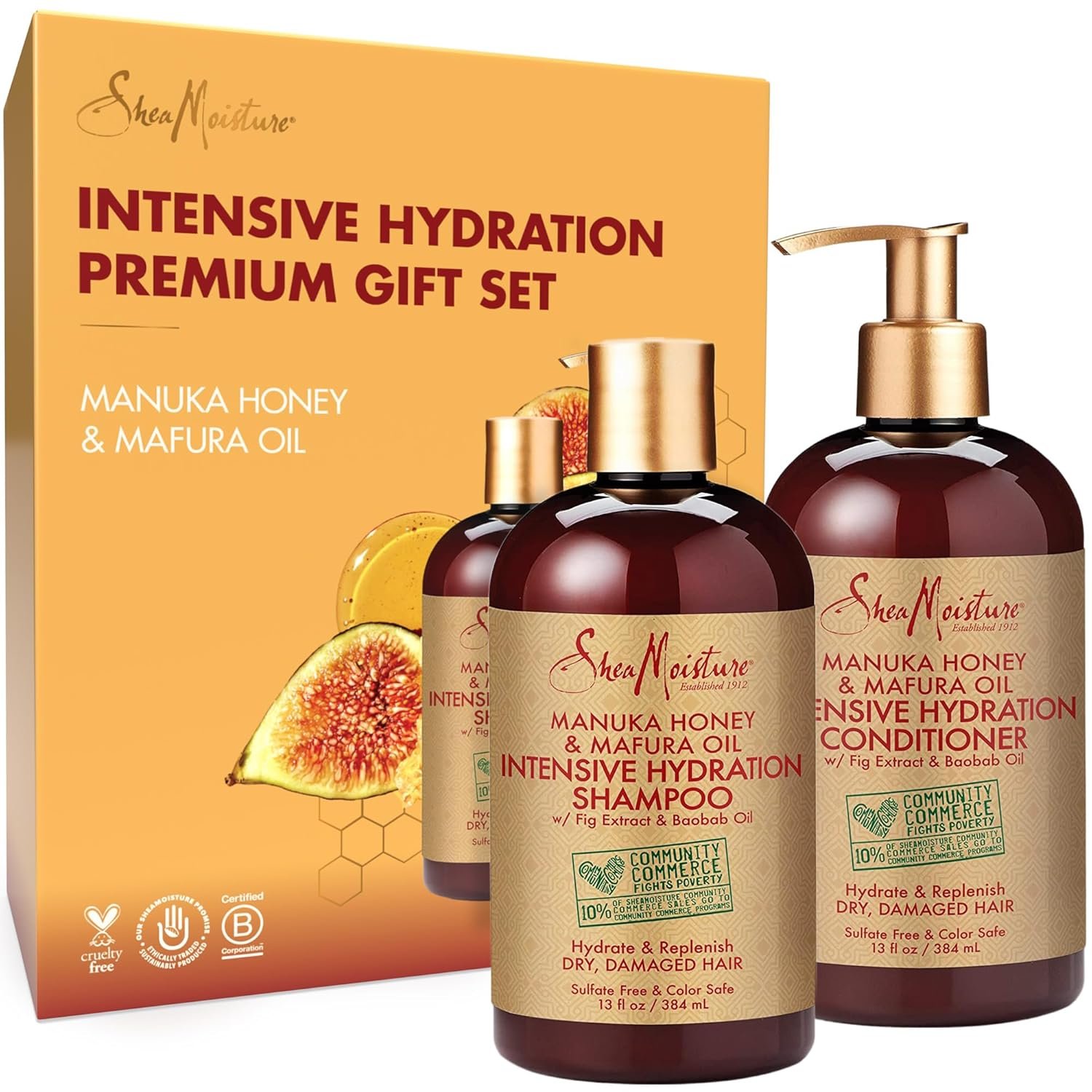 SheaMoisture Shampoo and Conditioner Set, Manuka Honey, Mafura Oil, Baobab Oil & Fig Extract, Hydrate + Replenish, Vitamin C, Sulfate Free & Hair Color Safe, Deep Conditioning, 13 Fl Oz Ea