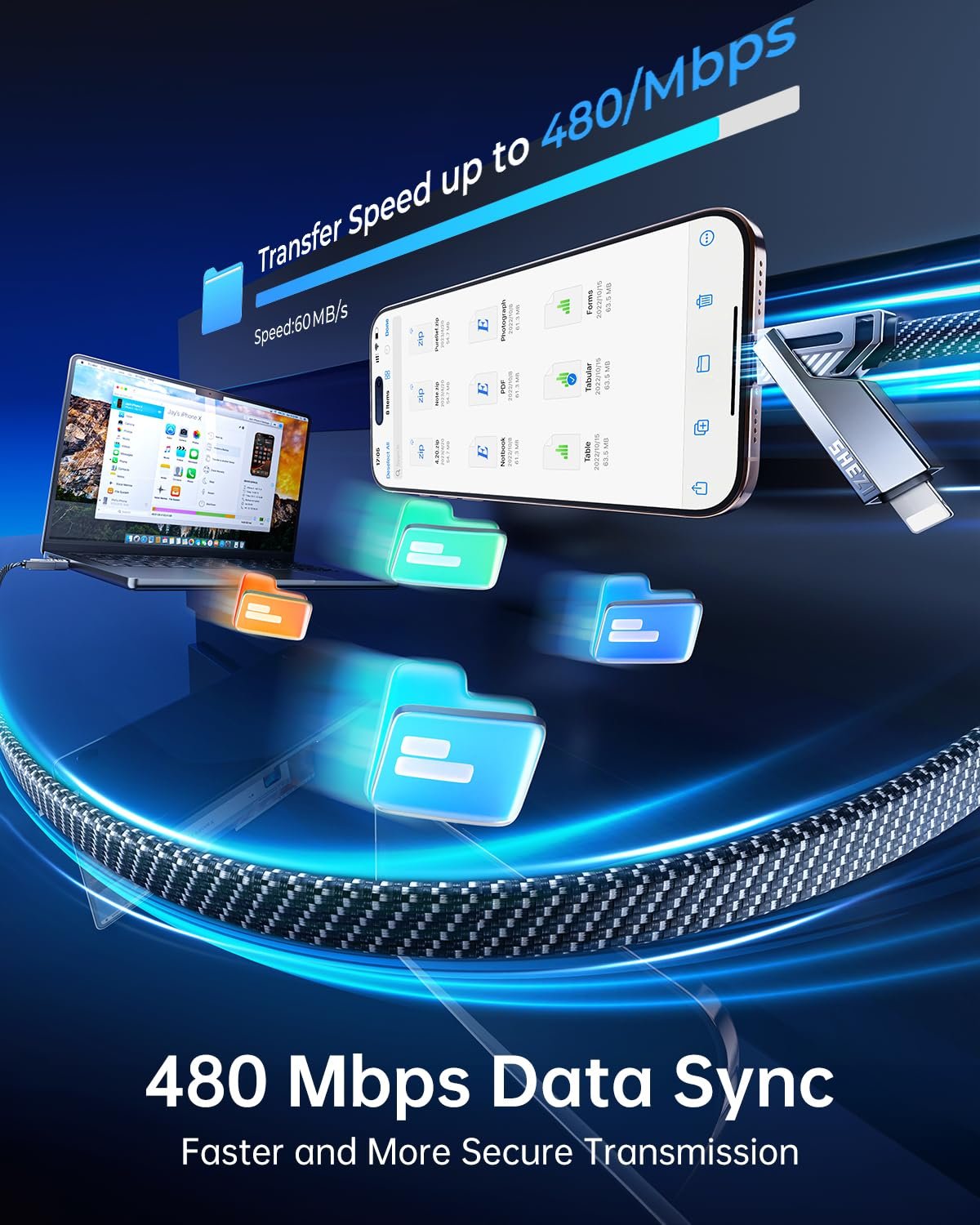480Mbps Data Transfer-USB 2.0: With a speed of up to 480Mbps, our iPhone cables can handle most data transfer tasks, such as syncing music, photos, and documents between devices quickly and efficiently. Note: USB 2.0 Cable do not support video transfer
