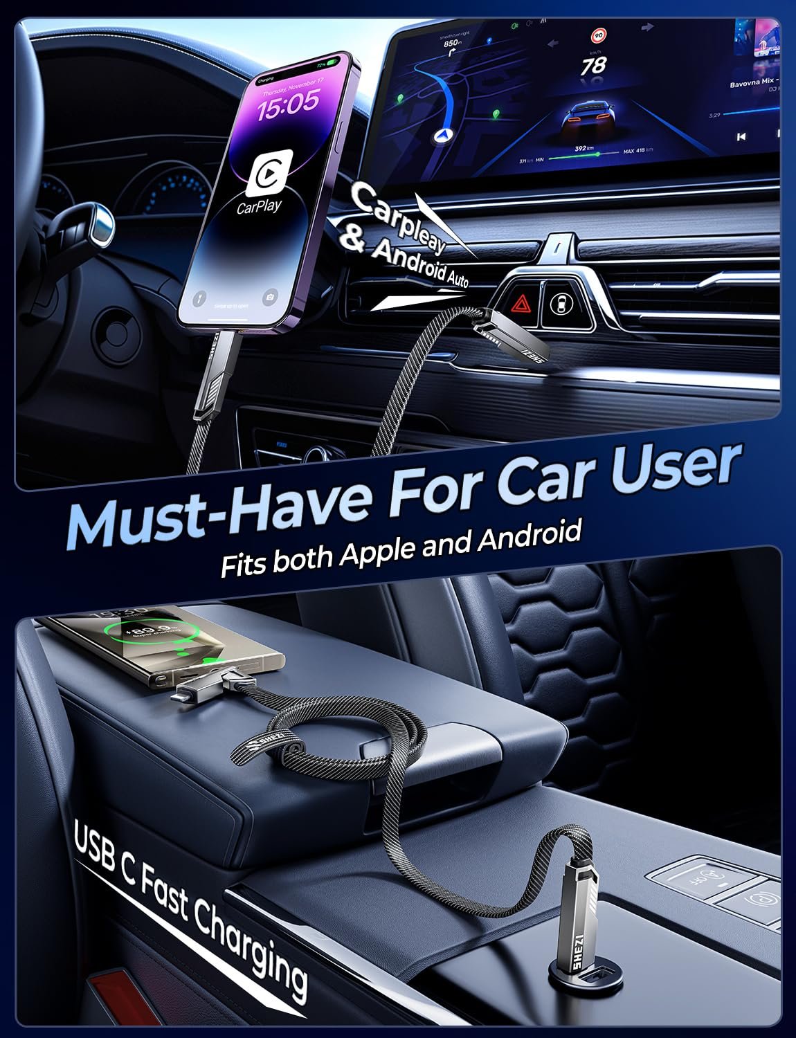 Support Apple Carplay & Android Auto: Our usb c cable can work with Apple’s official CarPlay and Android Auto System. Keeps stably connected during driving journey. Before using CarPlay, please confirm whether your vehicle supports the CarPlay system