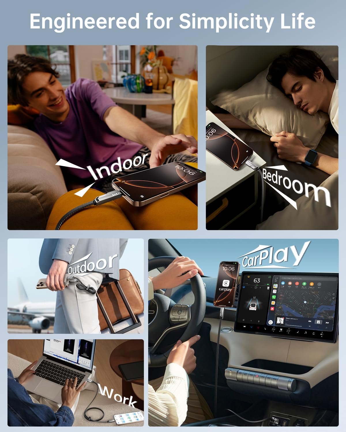 4-IN-1 Versatile Design: Our USB-C cable covers all your charging needs with 1 USB-A port, 1 Lightning port, and 2 USB-C ports. Compatible with most devices, it’s perfect for travel and everyday use, offering ultimate convenience in a single cable
