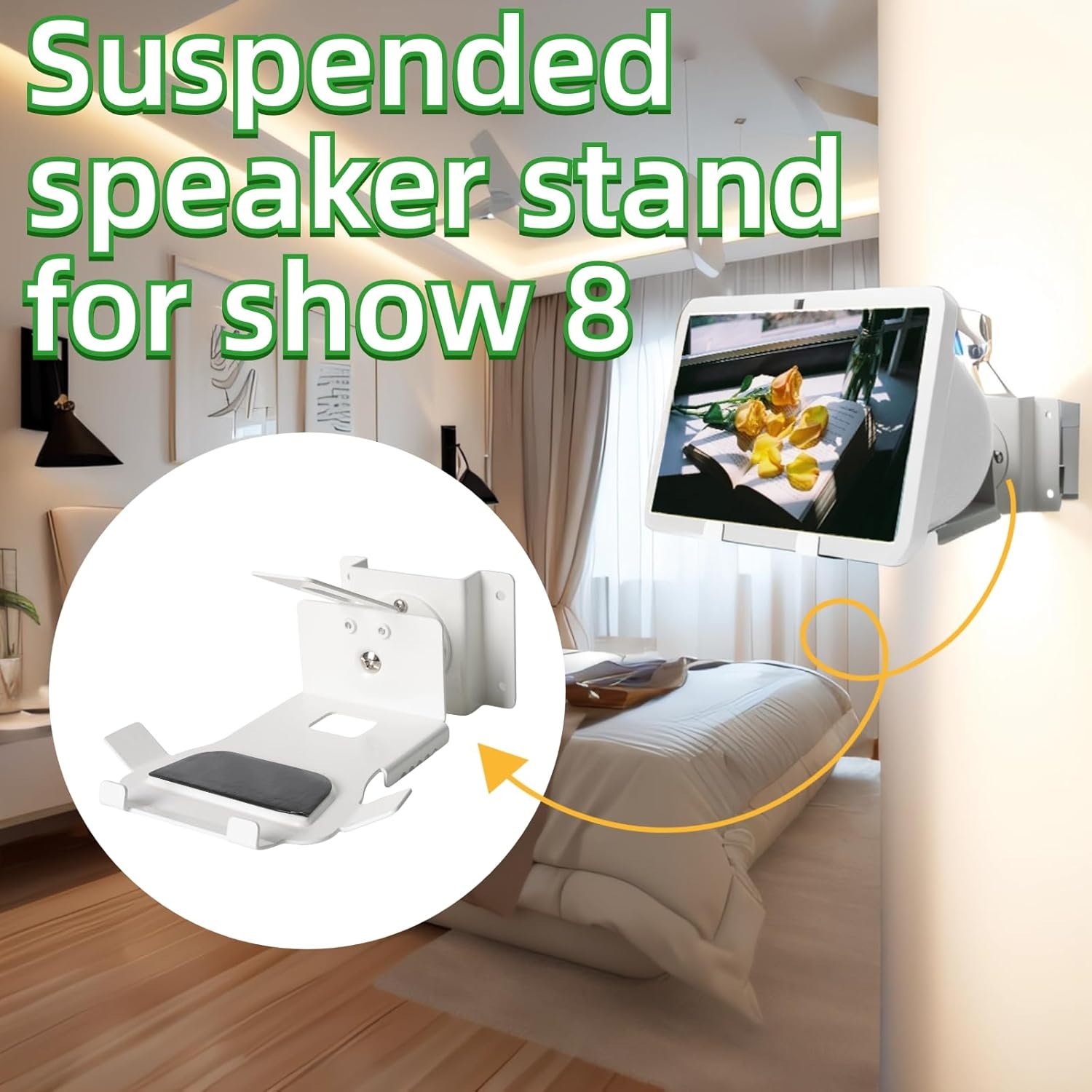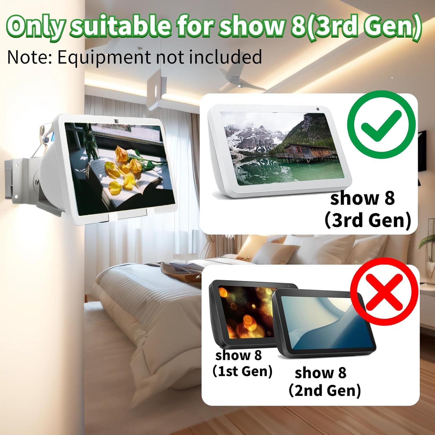 Metal wall bracket for Echo Show 8 (3rd Generation): The newer model bracket for Sh0w 8 . (Device and plug are not included)one step to install and remove, easy to use. Magnetless design is more stable and avoids the effect of magnets on electronic devices.