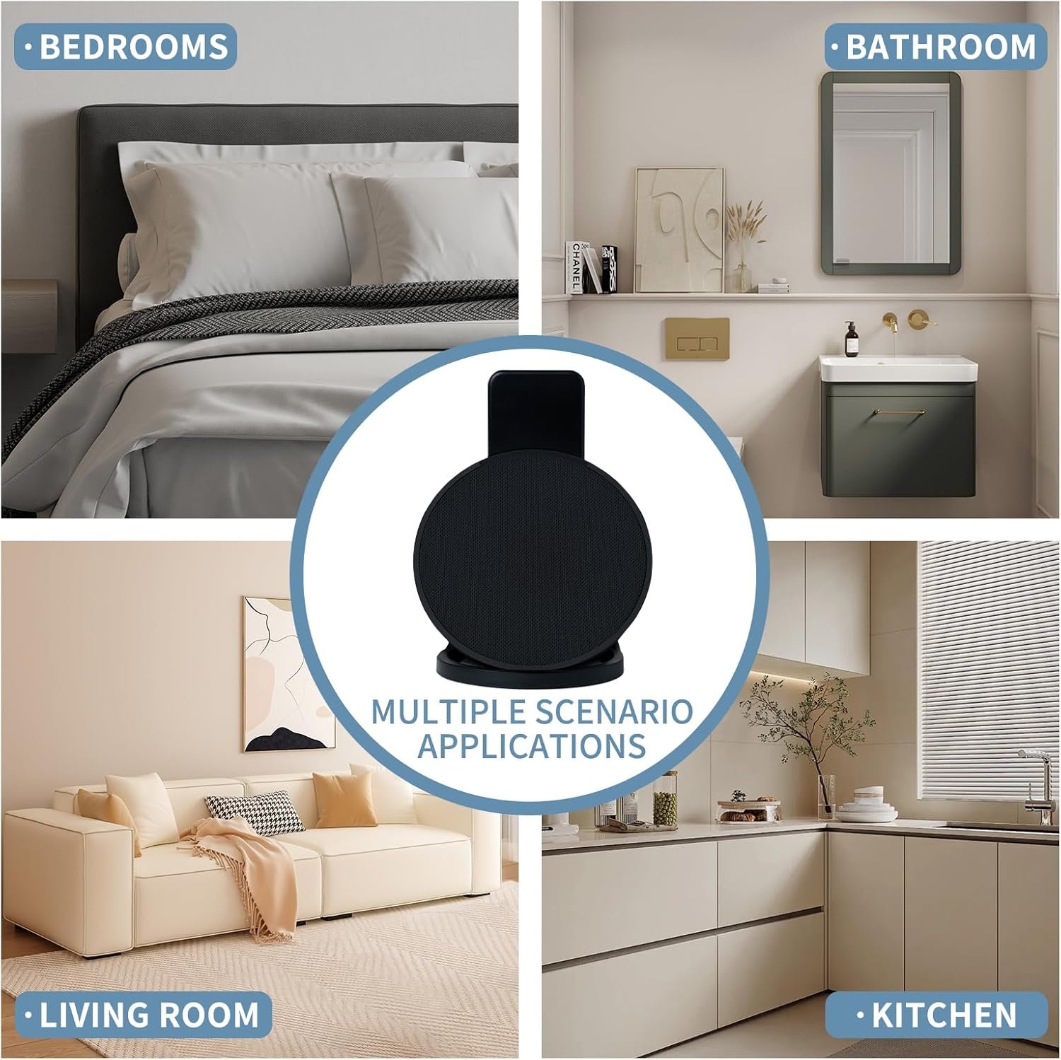Easy to install, no drilling or screwing required. Mount the speaker to the wall in seconds. The beautiful design makes the Ech0 Pop an elegant addition to your home. Suitable for kitchens, living rooms, bedrooms and bathrooms.