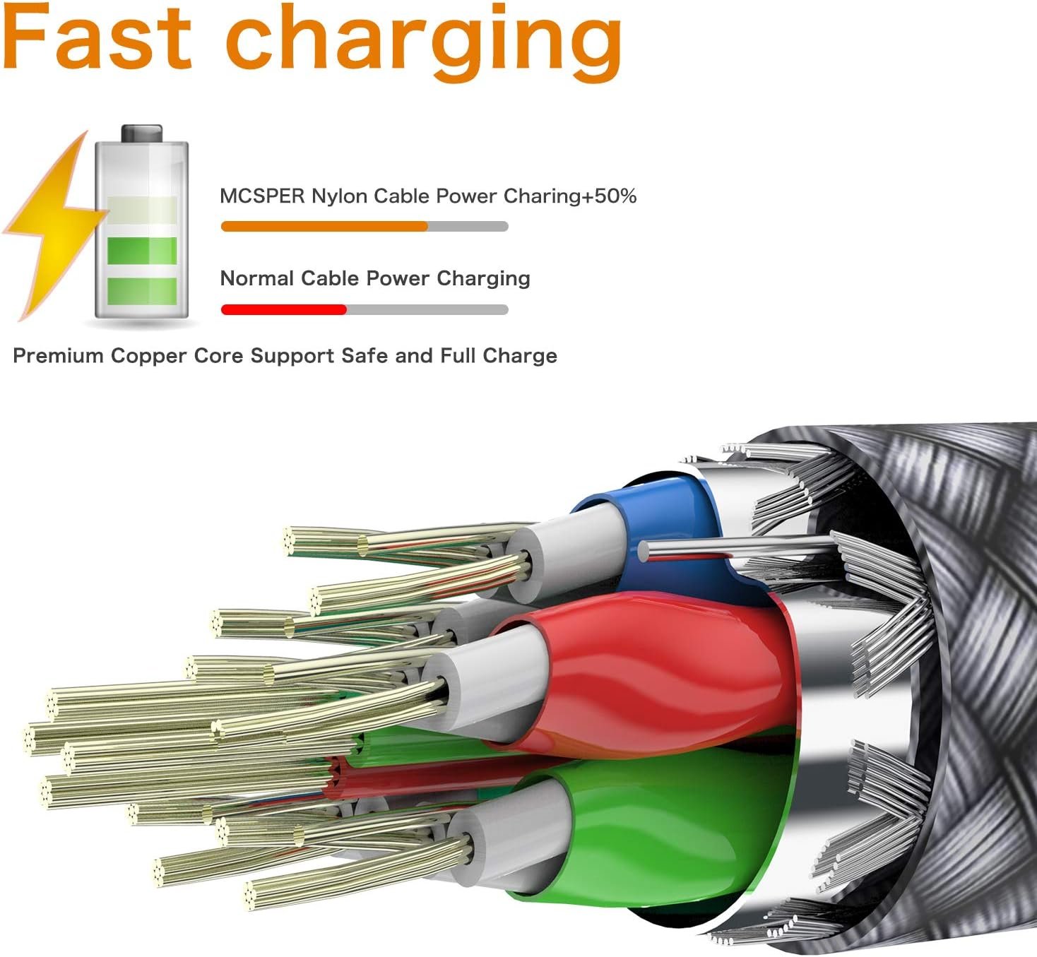 3.1A Fast Charger, Transfer speed up to 480Mbps, MCSPER USB Cable Accelerate the speed by delivering 5V/3.1A safe charging power (25% faster) compared with other cables which provides 5V/2.4A current.