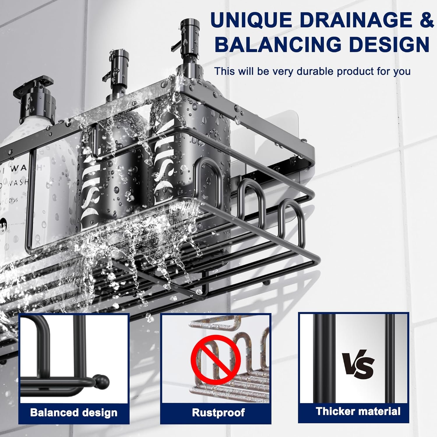 【Fast Draining】Hollow bottom allows shower organizer, soap holder and toothbrush holder to drain quickly, water is not easy to accumulate at the bottom, keeping shower supplies dry and not easy to damage the shelves and your belongings!