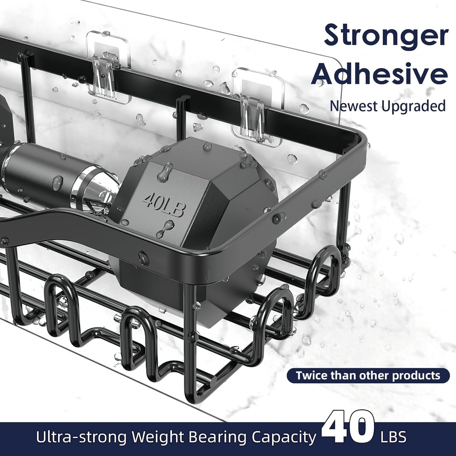 Newest Upgraded Stronger Adhesive Bathroom Caddy: The transparent traceless adhesives give ultra-strong reliability with up to 40 lbs of bearing weight, which is tested by professional institutions. The bathroom shower organizer has twice the load-bearing capacity of the old version. NESOMI bathroom shelf can be installed without drilling. The storage shelves will never worry about falling issues after proper installation, and make your family space use to the extreme