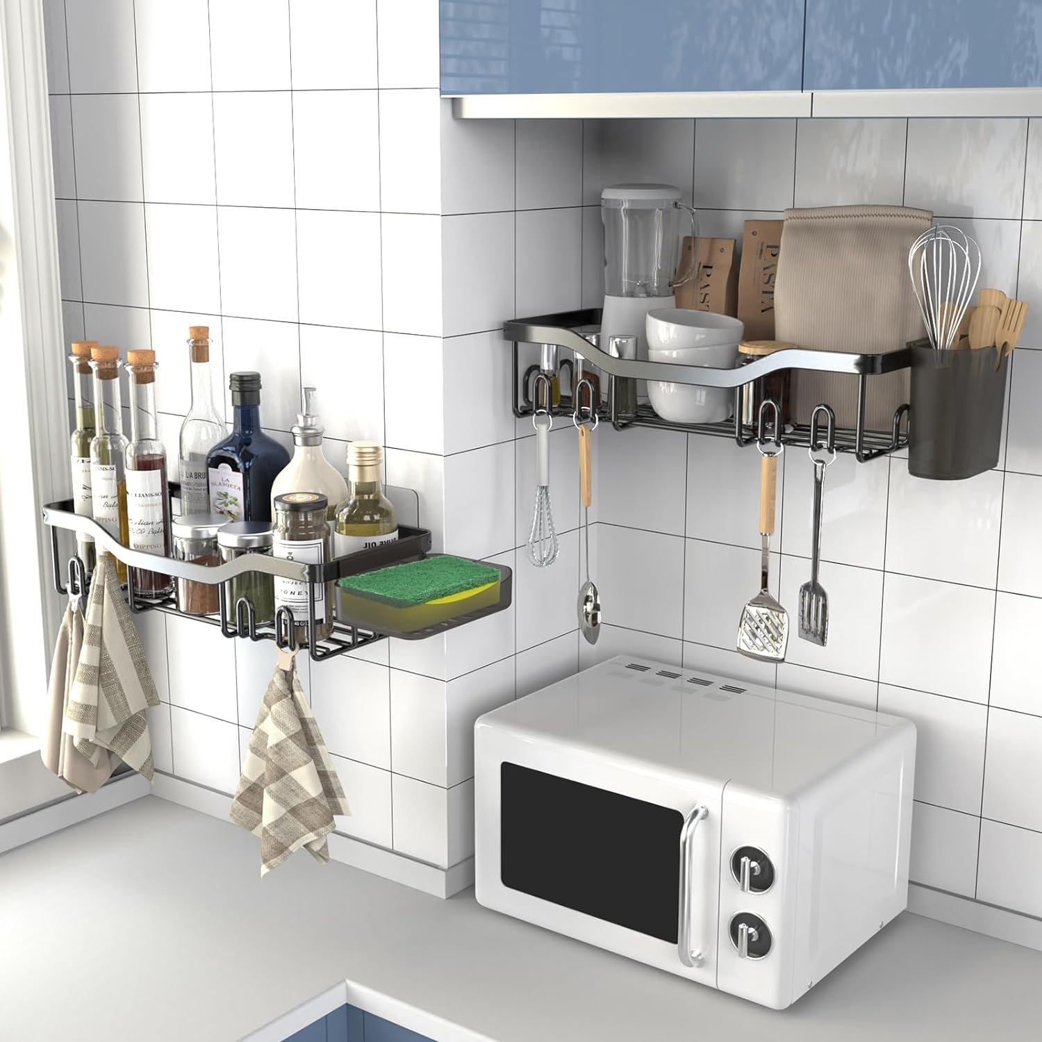 Ultra Size Shower Caddy with 16 Hooks: Shower organizer set comes with 2 shower caddies, 1 soap dish,1 toothbrush holder, 2 adhesives. Each shower shelf has 8 hooks, it’s perfect for storing bathroom essentials, wash supplies, cooking utensils, seasonings. Maximize your space with these roomy adhesive shelves, perfect for enhancing your toilet, bathroom, kitchen, RV, laundry space or tool room. Consider this bathroom organizers and storage set as a thoughtful gift for family and friends