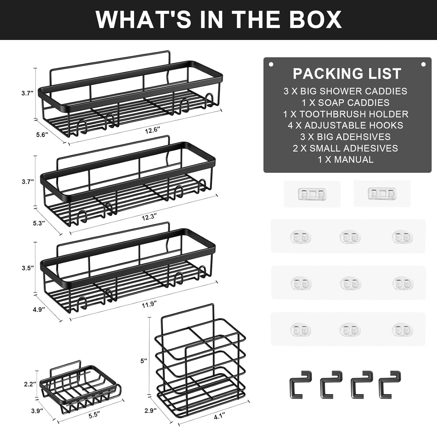 【Good Customer Service】 If the shower caddy shelves didn’t work well, please let us know and we will provide a better solution for every dear customer! If you need more adhesives, please search for B09XMQP778