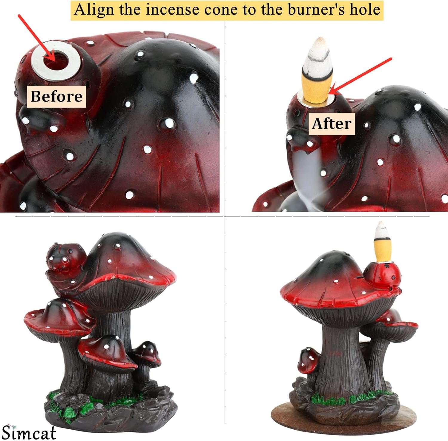 【Perfect Gift Choice】Simcat mushroom incense waterfall burner design with cute mushroom outlook, features with practical usage as both decoration and backflow censer, is a perfect gift choic for family, friends, colleagues, etc. Great to be gift for birthday, housewarming, thank you gift, business gift, Mother’s day, Father’s day, etc.