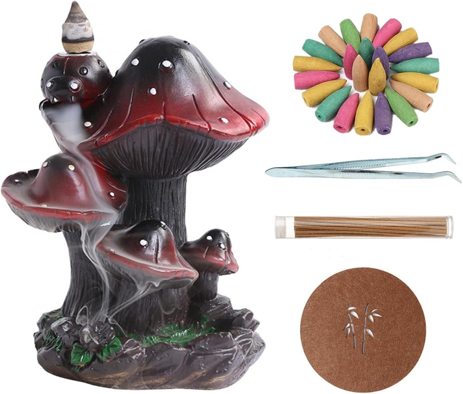 Simcat Backflow Incense Burner Holder Mushroom Handicraft Decor Resin Reverse Flow Incense Burner Censer Cone Incense Waterfall Burner + 20 Backflow Incense Cones 30 Incense Sticks 1 Tweezer 1 Mat