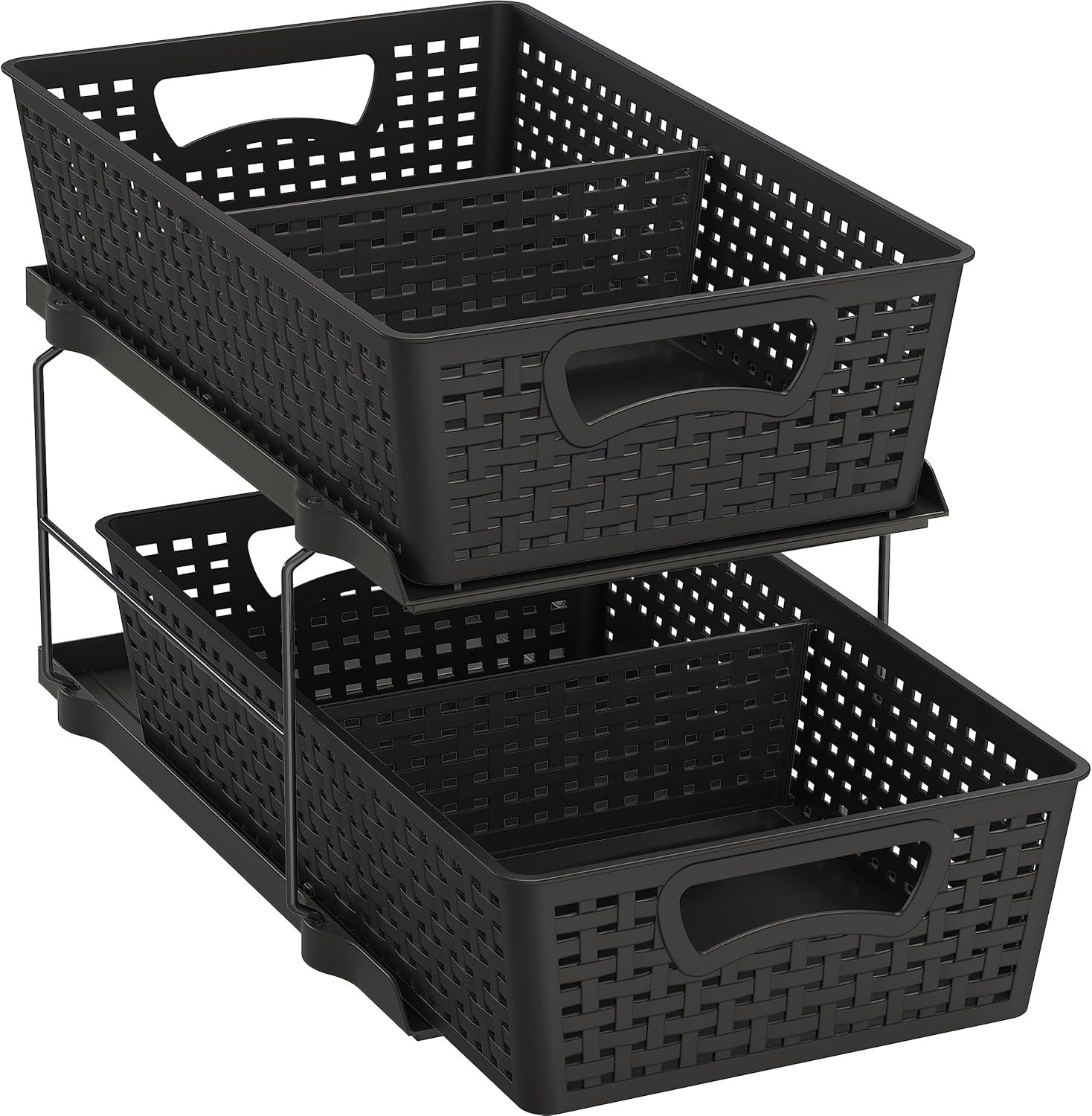 Organize any cabinet with this convenient sliding basket organizer. Its design makes it perfect for the pantry, under the sink, or on your countertop.Attractive metal construction and lift-out baskets with easy-to-carry handles…