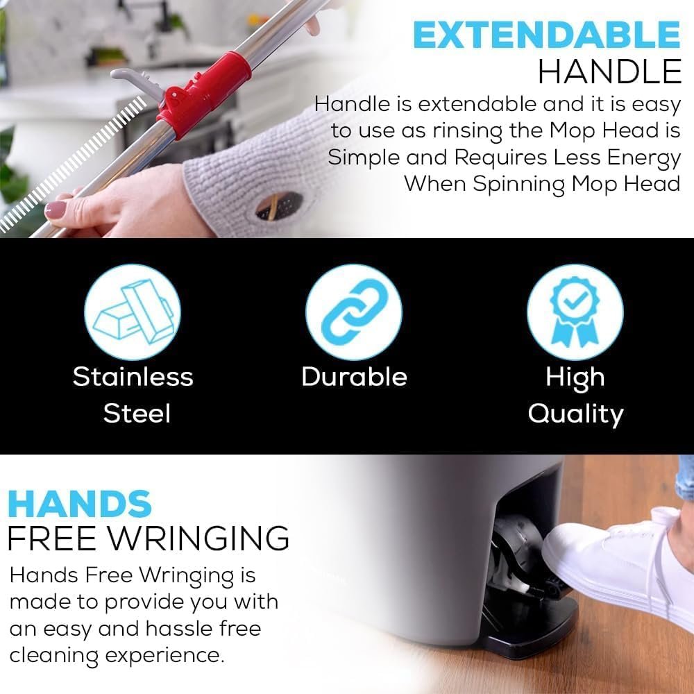 SUPER-ABSORBENT SPINNING MOP HEADS: our spinning microfiber mop heads grab the messes so you’re not pushing the mess, but actually picking it up in the microfiber fingers. They’re super-absorbent and pick up 10x its weight in dirt and debris.