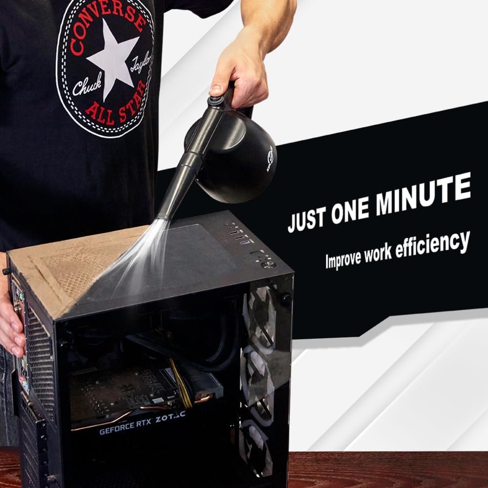Powerful and effective – Our dust blower can blow at 27m/s and 67.5MPH immediately and continuously provide high-pressure air to remove dust, debris and dust from any electronic equipment in the home or office. At the same time it has strong light irradiation-easy to point to the clean area.
