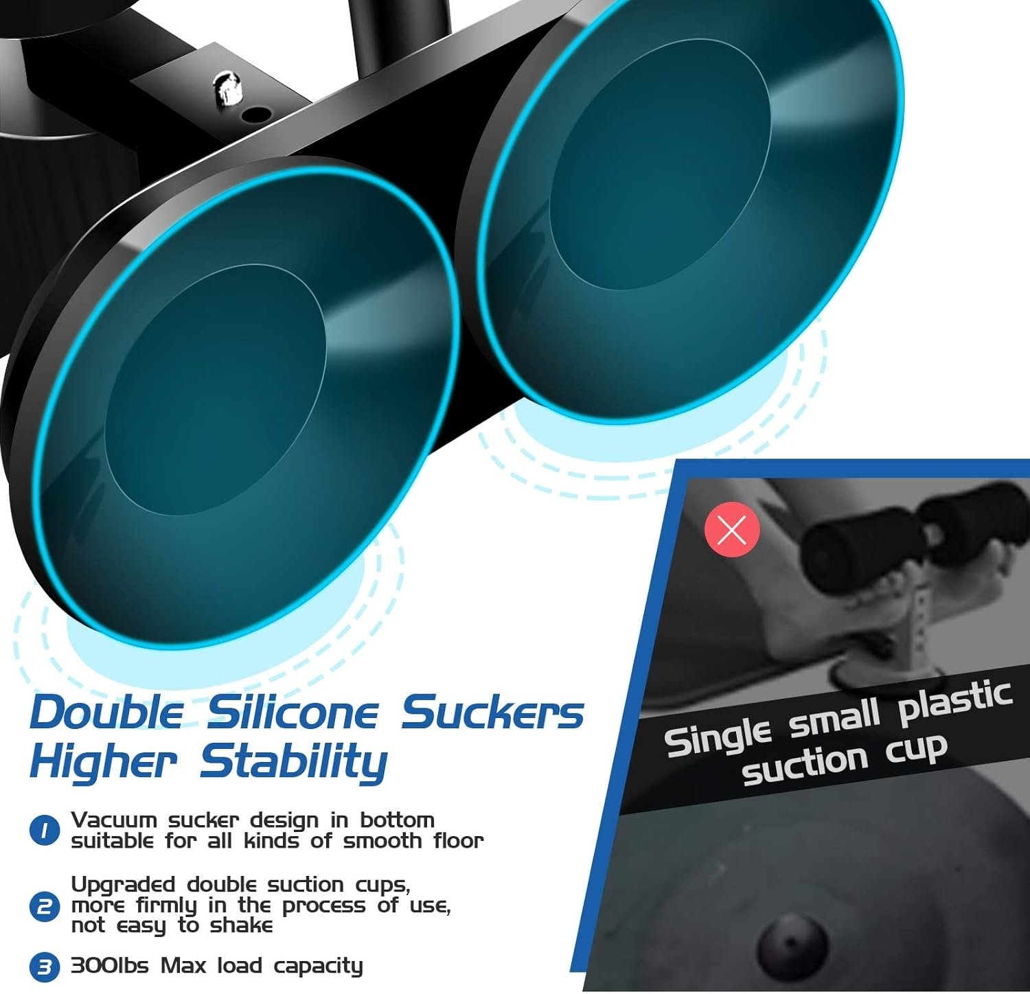 【UPGRADE STRONG SUCTION】:Upgraded rubber suction chassis has a larger area and stronger suction. Double suction cups made of natural rubber provide super stability, grip, and safe, allowing you to exercise at ease.