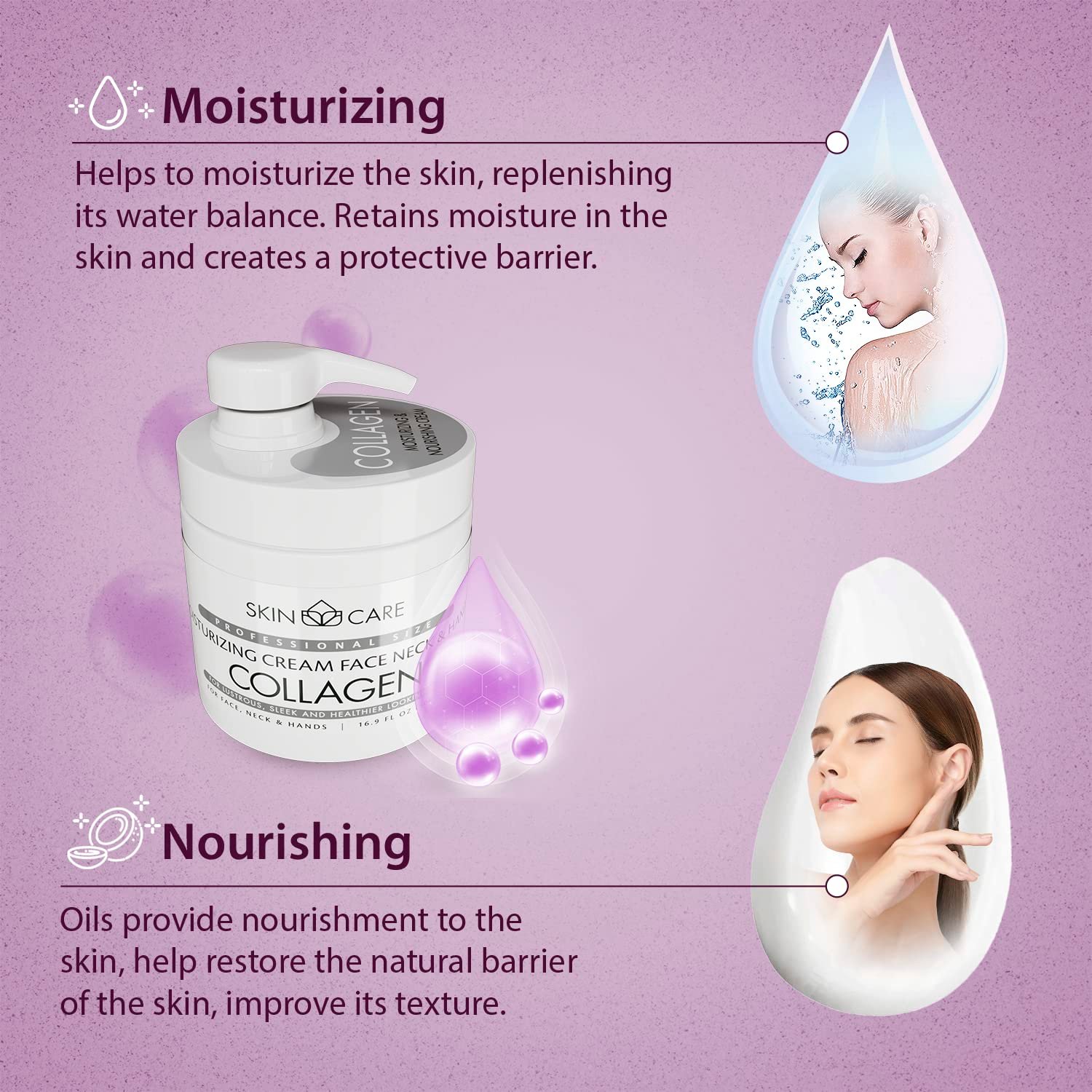 Skin Care Collagen 3-in-1 Moisturizer Face Cream, Neck and Hands – Treatment for Crepey Skin, Wrinkles and Sagging – Daily Lotion for All Skin Types – 16.9 fl. oz.