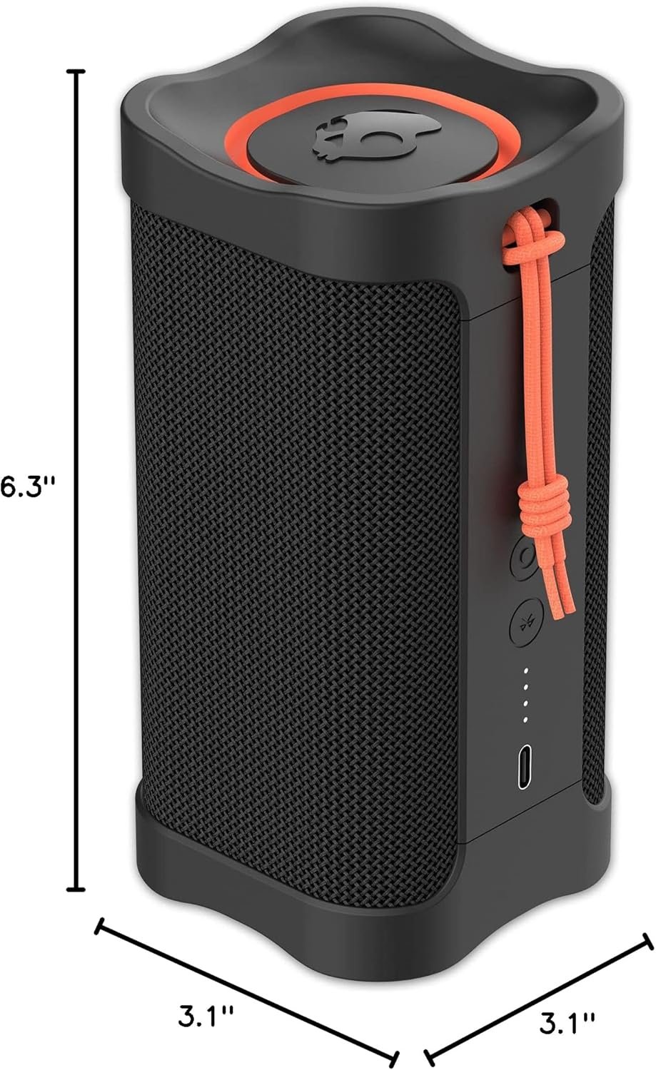 Portable & Durable- Skullcandy’s mini wireless Bluetooth speaker comes with a nylon wrist wrap for easy carrying. The waterproof woven fabric mesh is engineered to allow maximum range of audio waves to pass through.
