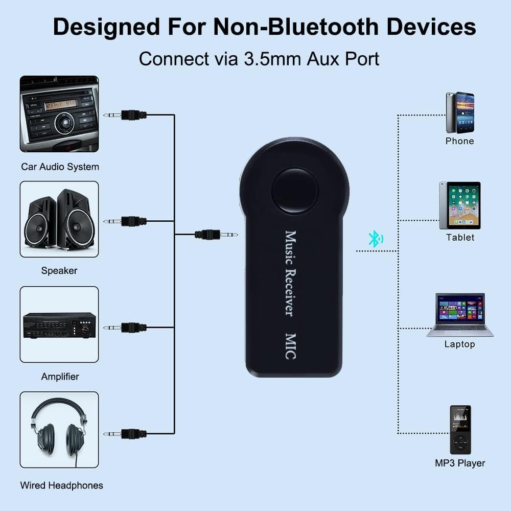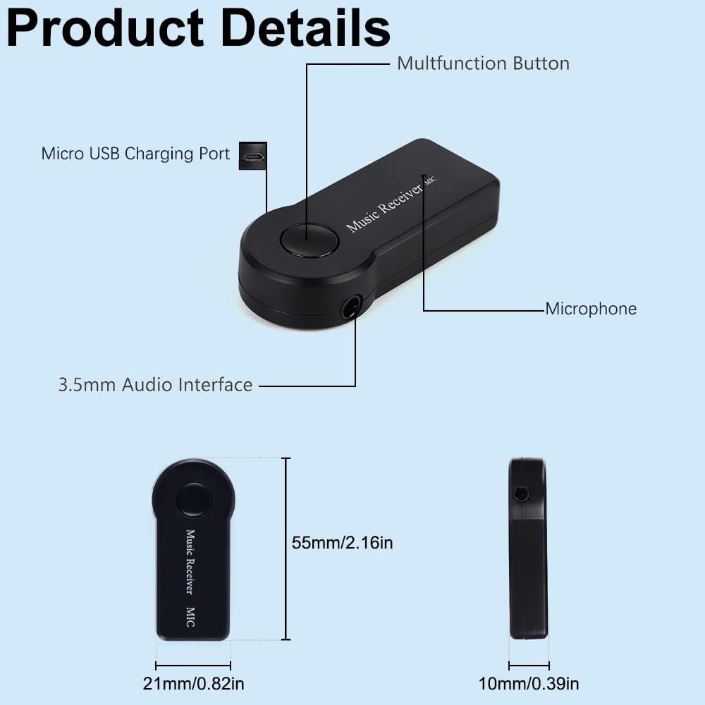 Hands-Free Calls: Plug this Bluetooth aux adapter into your car audio system and Answer Calls with built-in microphone while driving. Keep your eyes on the road ahead for safe driving.
