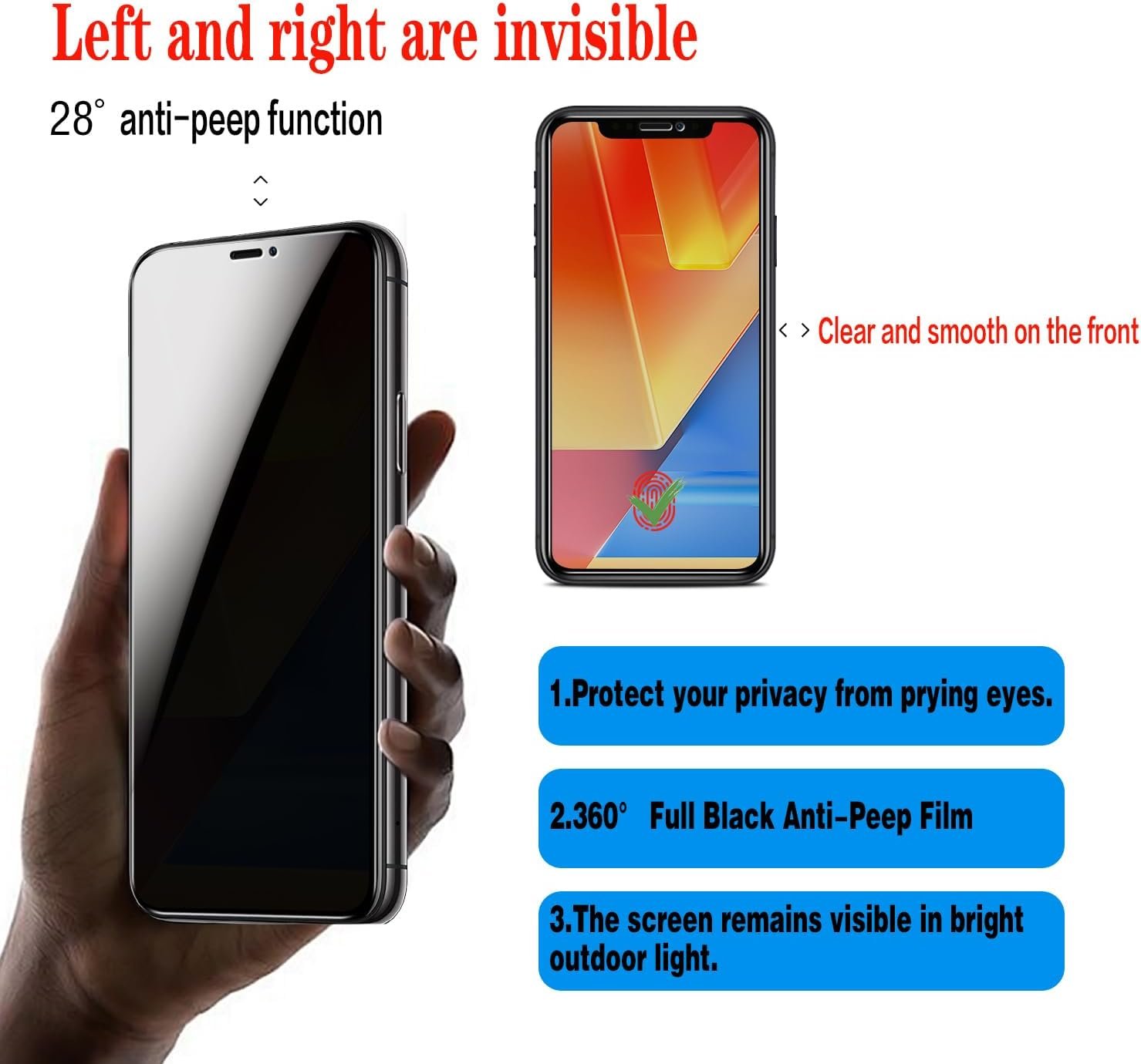 Q: Why is the screen protector so dark and I can’t see the screen?A: Because this privacy screen dims the screen to prevent people near you from peeking, you may want to turn up your device’s display brightness slightly while using it.Q: Why buy this privacy tempered film?A: The anti-peep tempered film can only clearly see the content on the phone screen when facing it directly, better protecting your personal privacy in public places.Q: Will this tempered film affect my eyes?A: After use, you will find that this privacy film has an anti-glare effect, and you don’t need to worry about any external light source causing damage to your eyes.Q: What is the difference between ordinary tempered film and this kind of privacy tempered film?A: This anti-peeping tempered film has all the functions of ordinary tempered film while adding anti-peeping and anti-glare functions. It is an enhanced version of ordinary tempered film.