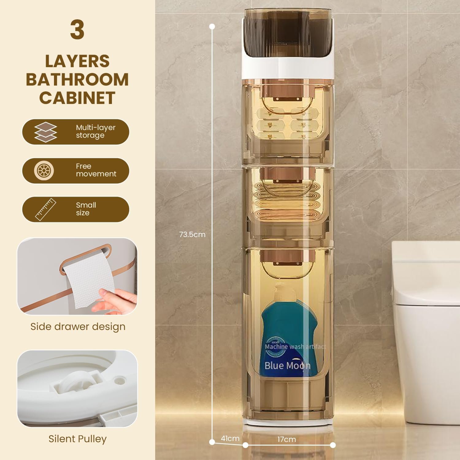 Note: Package onlyincludes one 3-tier slim bathroom storage cabinet.