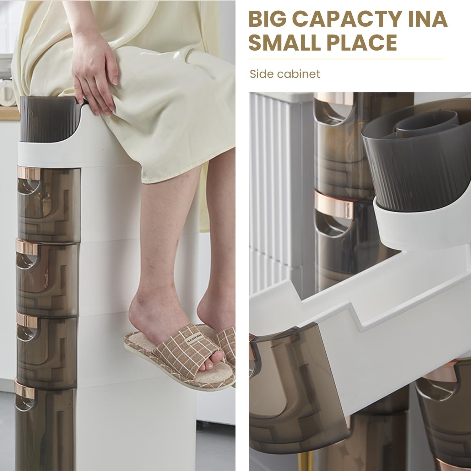 Our cabinet boasts a unique rotatable storage compartment, allowing you to access items with ease and efficiency. No more digging through cluttered shelves or cabinets—simply rotate and retrieve!