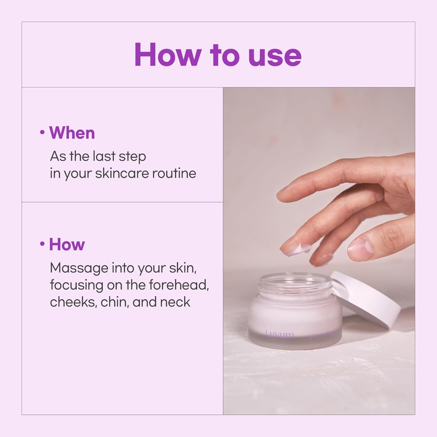 HOW TO USE – Apply a thin layer as the last step of your skincare routine, massaging into cheeks, forehead, chin, and neck.
