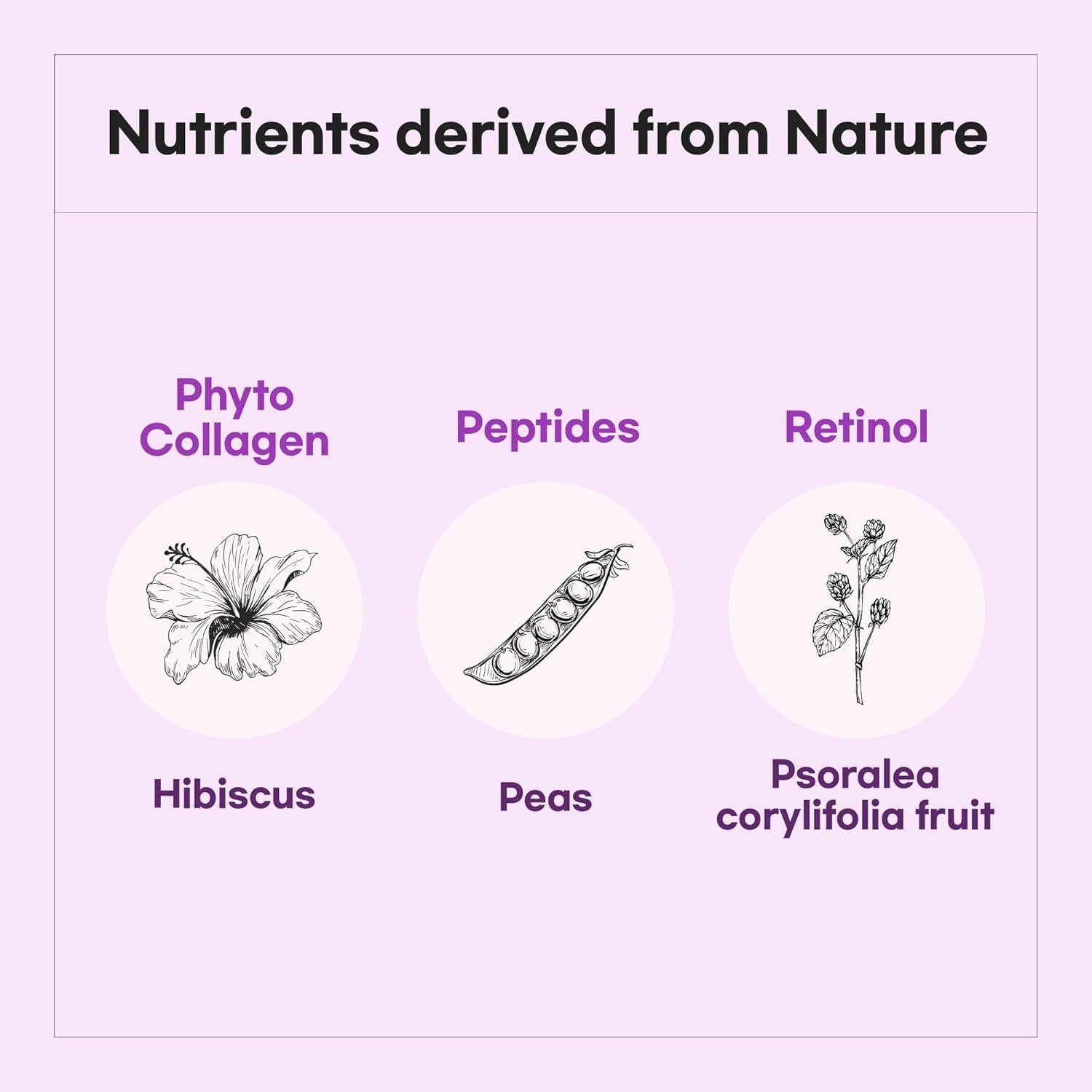 KEY INGREDIENTS – PEA PEPTIDES : Pea-derived Peptides, the building blocks of proteins, stimulates collagen production for enhanced skin elasticity. RETINOL: Psoralea corylifolia fruit extract contains retinol which improves collagen production by increasing cell turnover and neutralizing free radicals.