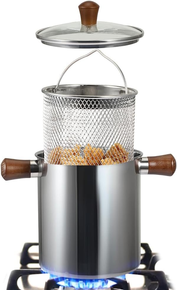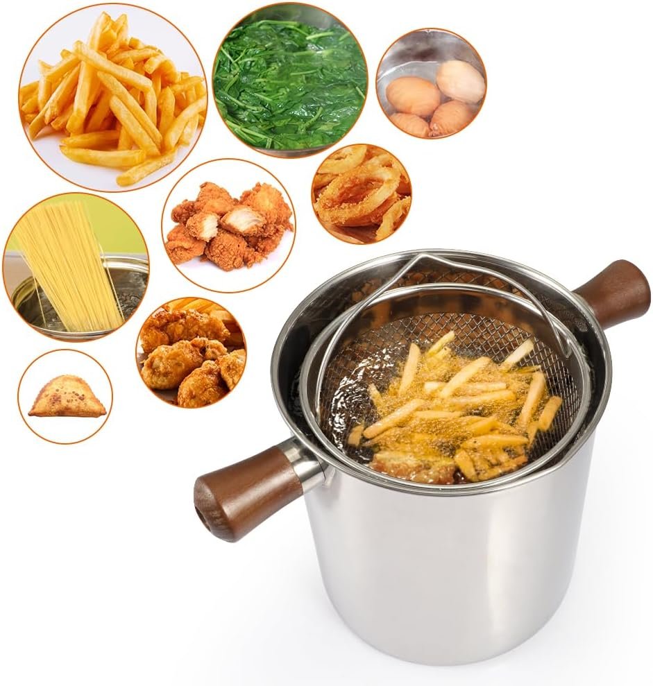 High-temperature resistance: Our frying pot with basket and lid is compatible with a variety of fire sources, including gas cooktops, induction cooktops, and electric stoves.