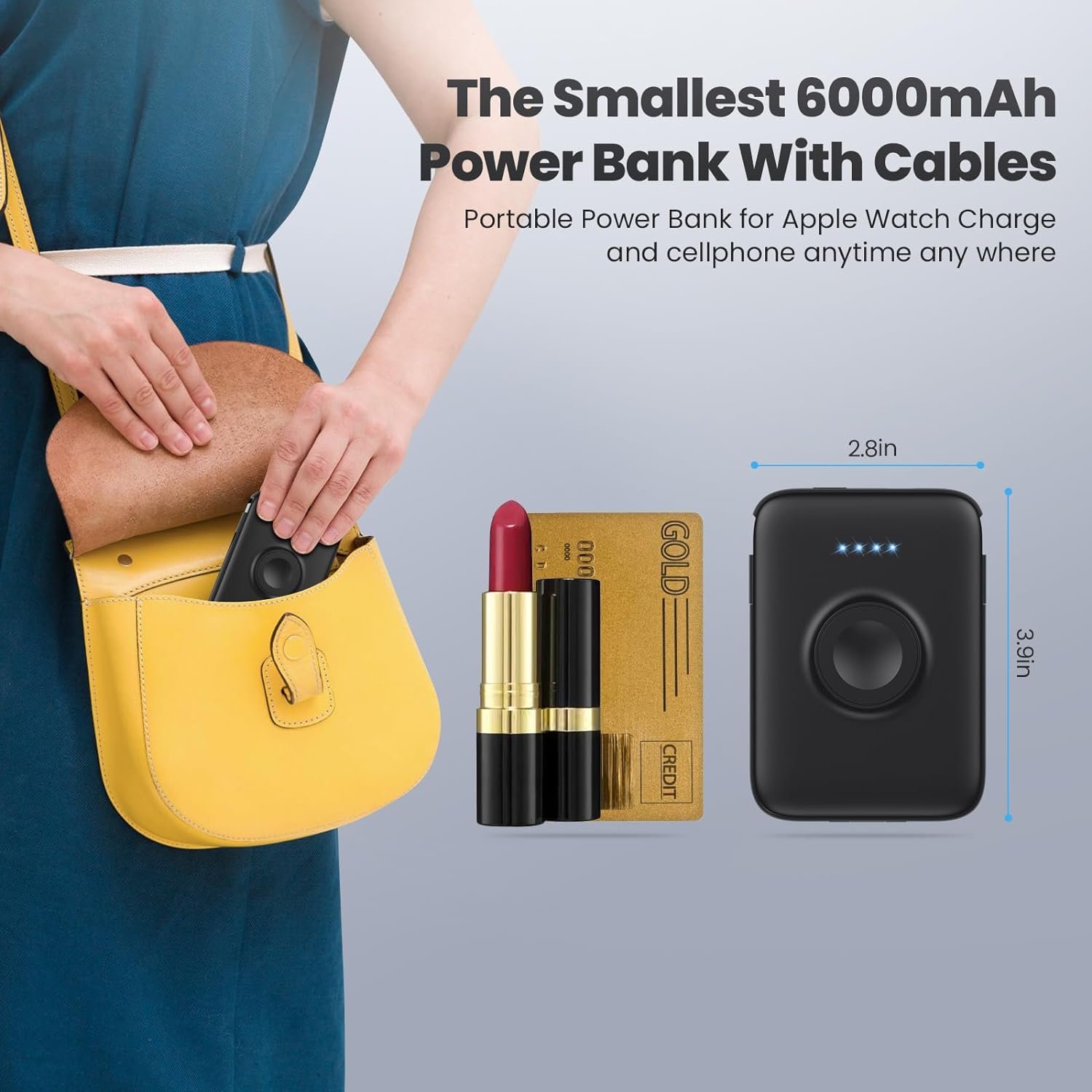 【Compact and Ultra Slim Power Bank】The mini and slim portable charger is only 0.5 inches, as big as a bank card, and weighs only 0.4 lbs. You can carry it around in your pocket, specifically for travel, camping or any other outdoor activity, and never have to worry about your phone and apple watch running out of power again!