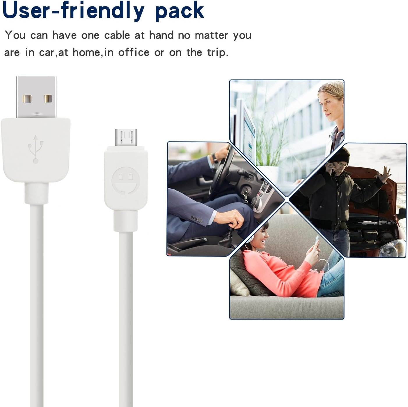 long charger cable is suitable for you to use in different occasions, such as at bedroom, at office,and even at the backseat of your car, you can charge your devices with this cable with no concerns.