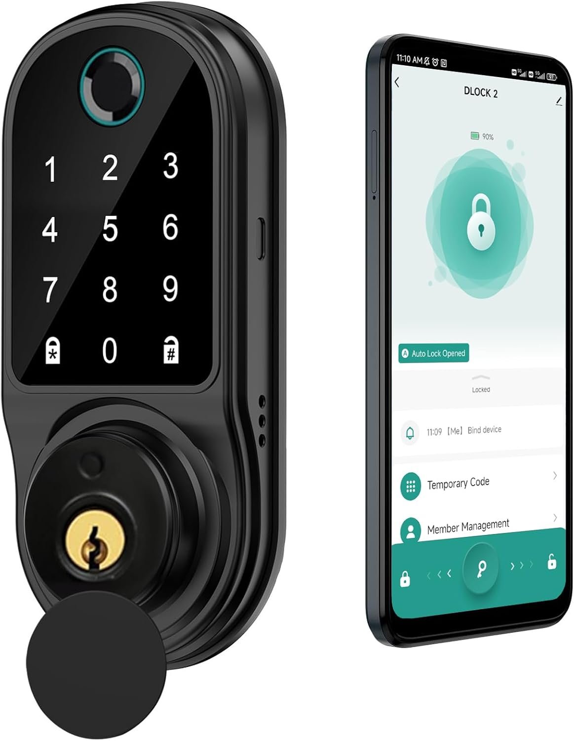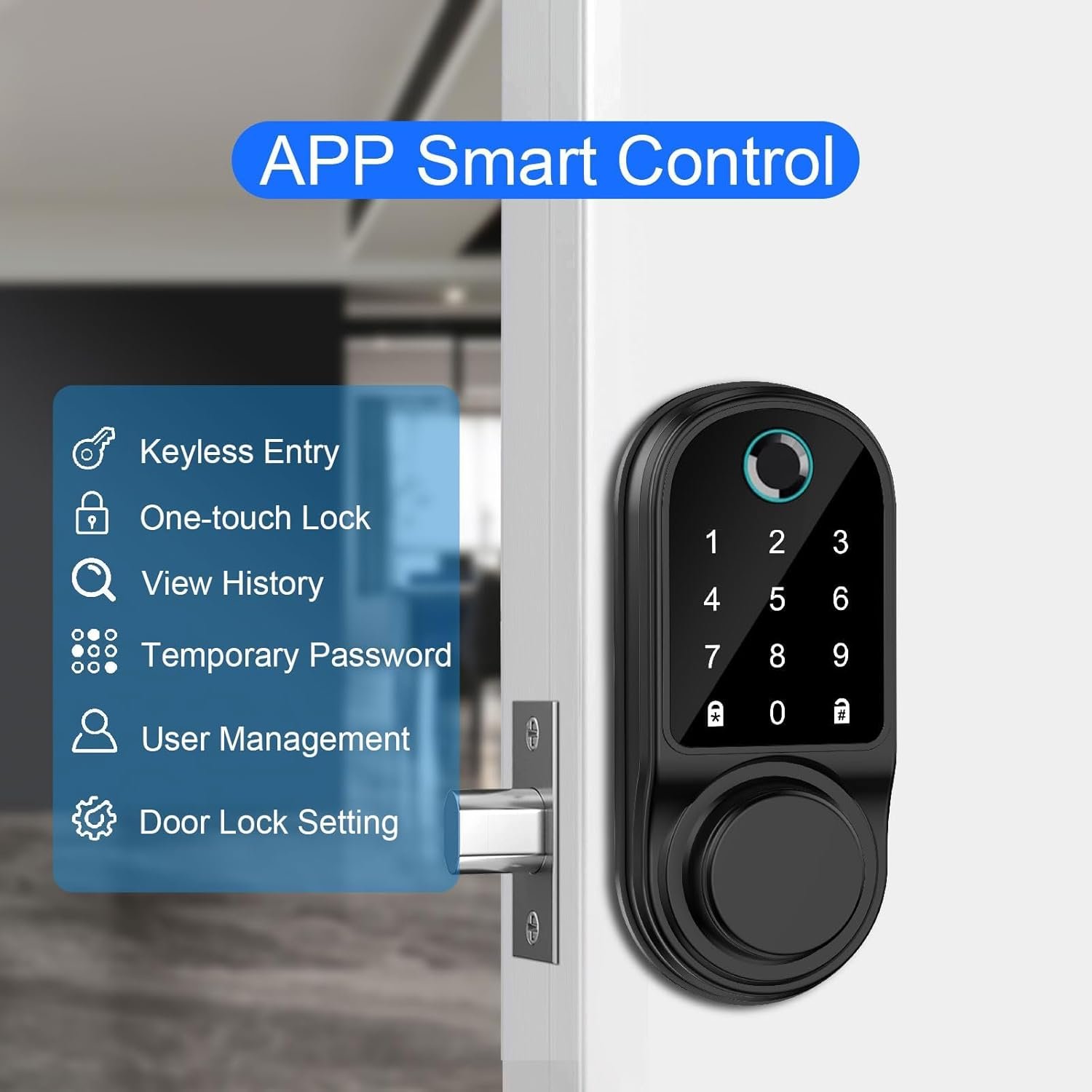 【APP Control Manage】: Within the smart deadbolt lock Bluetooth range, through the smart APP, you can use your smartphone to set up and manage your smart door lock. You can easily lock/unlock your keyless entry door lock, check status, manage users, change/share passwords, and unlock records. Convenient operation and secure control are at your fingertips. (The app works with Bluetooth)