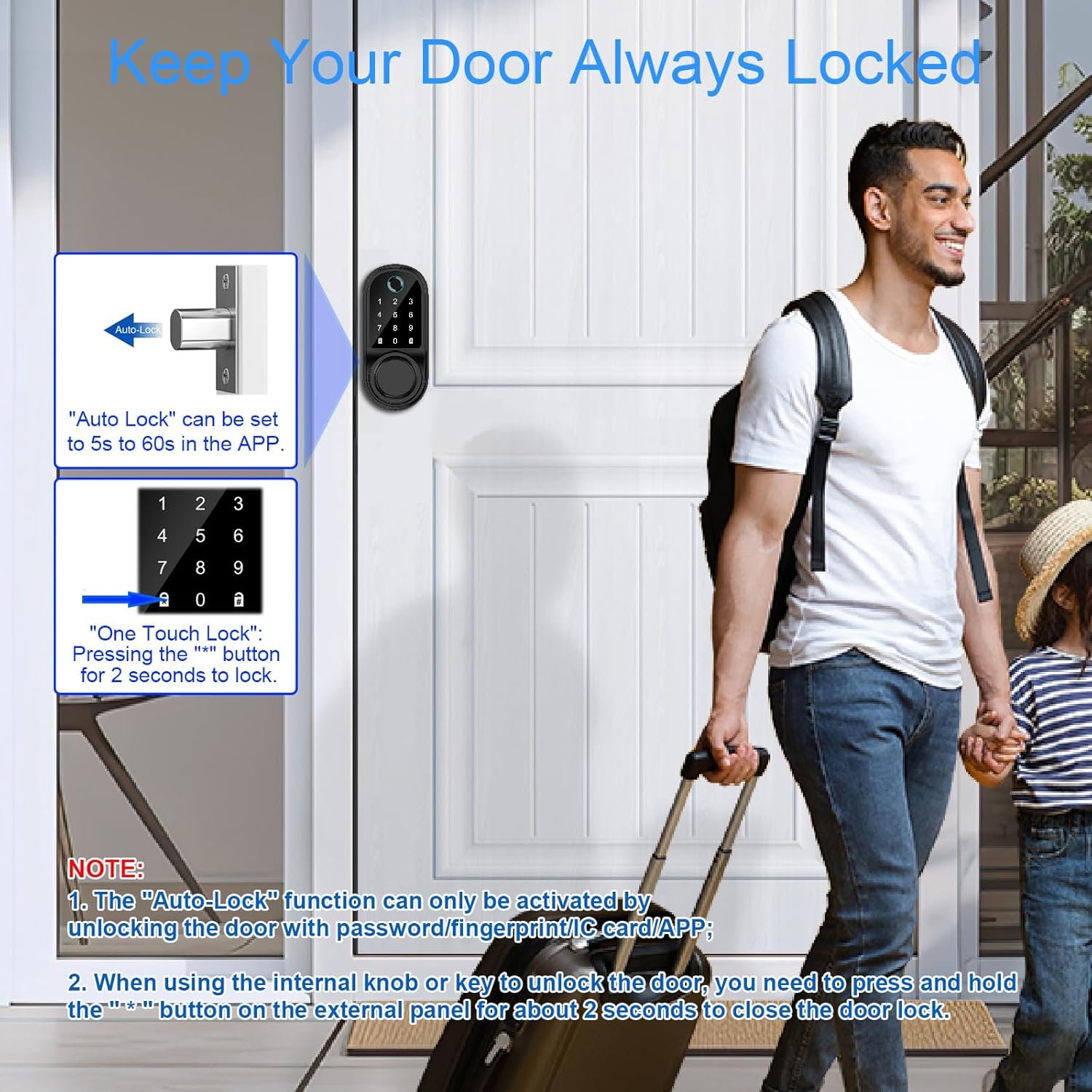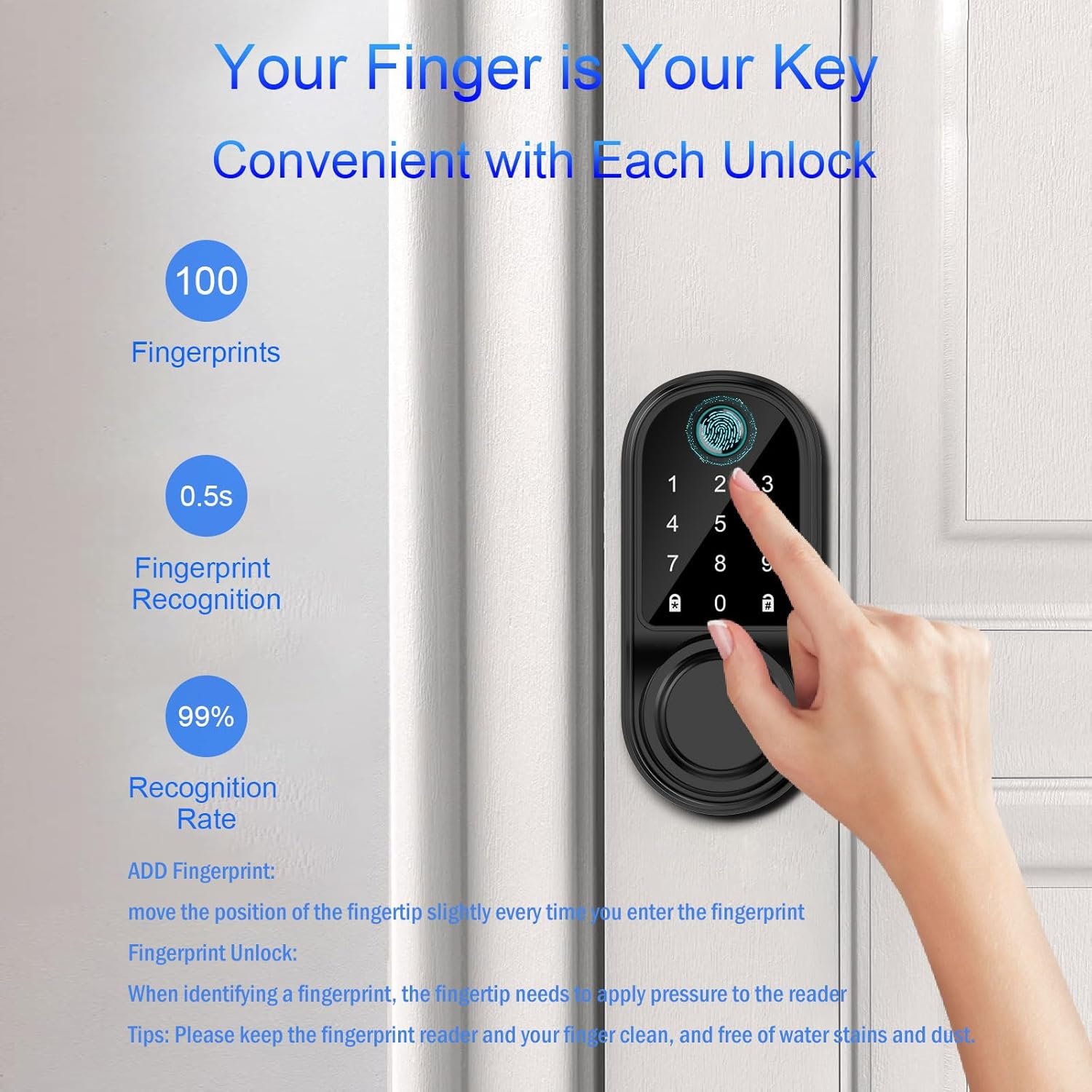 【Security Efficient 3D Fingerprint Lock】: Your finger is the key. Place your finger on the sensor, and the fingerprint door lock will unlock in 1 second. No more fumbling with keys or worrying about lost or stolen access cards. The fingerprints are stored on the door locks for front door and not uploaded to the cloud to ensure your family’s privacy.