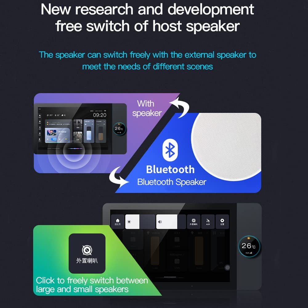 BUILT IN SPAEKER:Our intelligent panel is not only a control system, our products built-in speakers, mark, support tuya equipment two-way intercom, and cell phones and panels can play music synchronously, so that your life is more intelligen.Up to two speakers can be attached so that you can enjoy wonderful music all the time in your home.