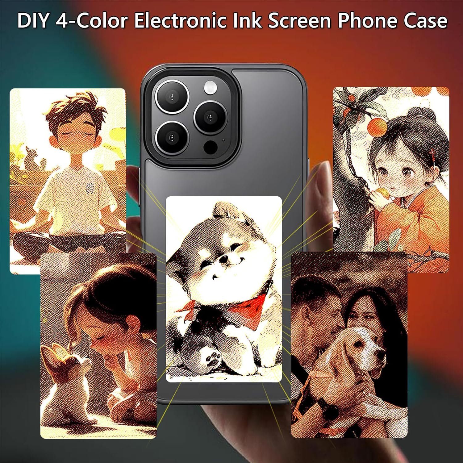 【Four Color Display】The AI phone case ink screen consists of four simple color screens: black, white, red, and yellow.This color display is clear and rich,compared to other three-color displays it remains clearer and lasts longer without fading.which can more realistically show the original color of the photo.