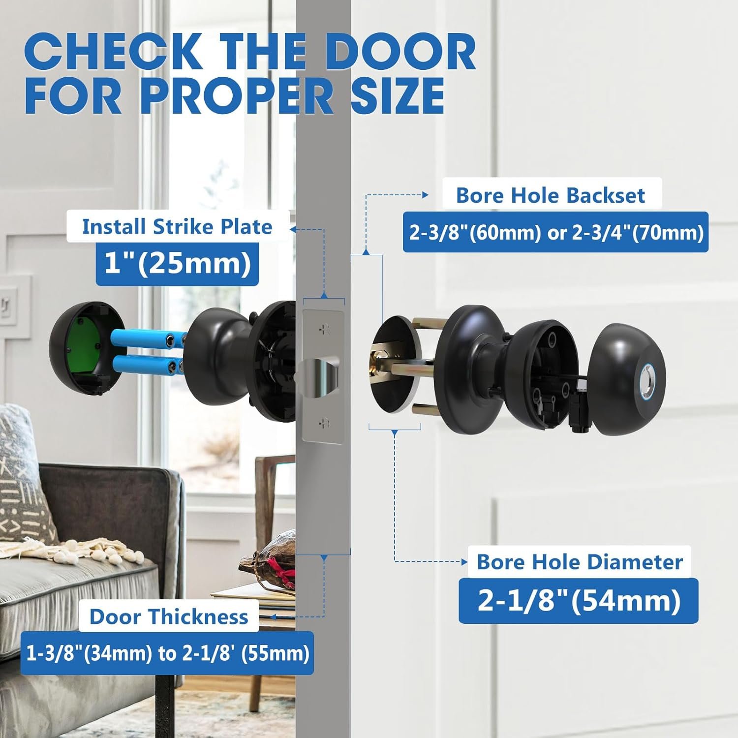 Enhanced Security: This fingerprint door lock is equipped with a biometric fingerprint sensor that recognizes your finger in 0.2s and can store up to 50 fingerprints. fingerprint door knob can be set to auto lock in 5-60s, fingerprint door lock with auto lock, one touch locking, passage mode and low battery alarm function, one-touch door opening function can ensure your home security