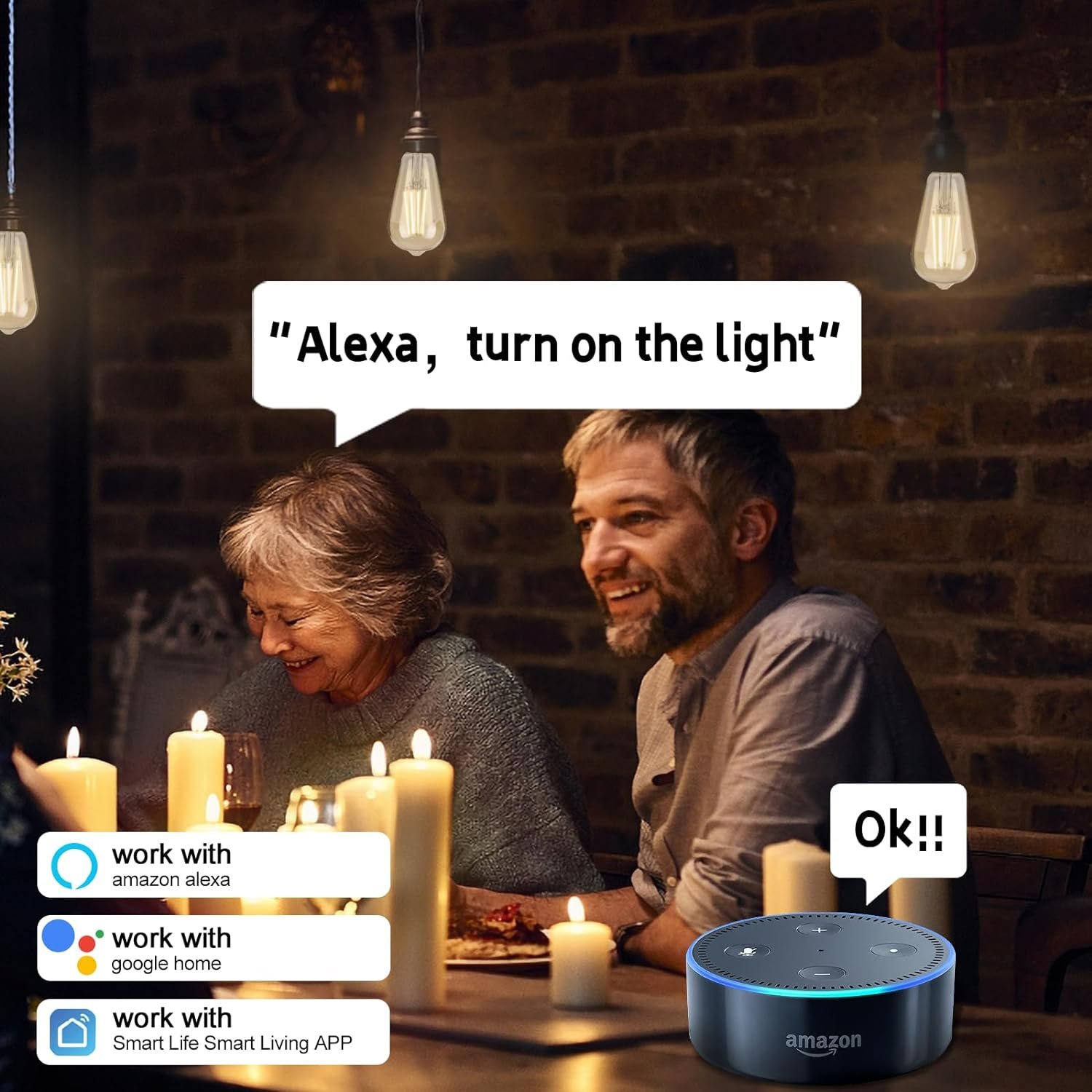 【Voice Control】- Retro WiFi smart Edison Bulbs work with Alexa and Google Home Assistant to perform your voice command. Just speak to your voice assistant to control the LED Filament Bulbs, turn on/off the light or adjust the brightness you want.