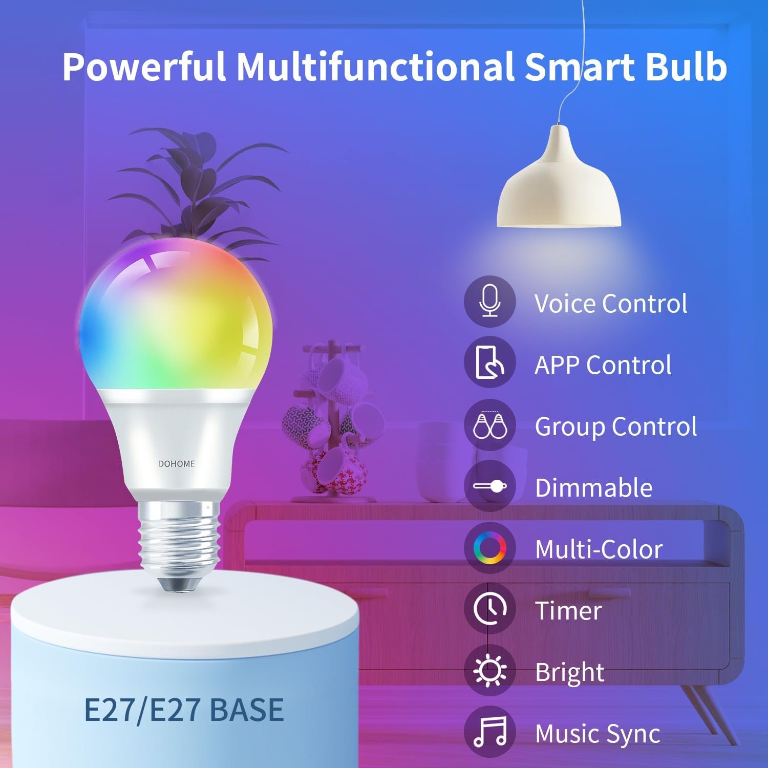 Group Control: You can create a group for smart bulbs and control multiple bulbs at the same time by connecting to 2.4GHz WiFi. You can share it with your family to control all the lights.