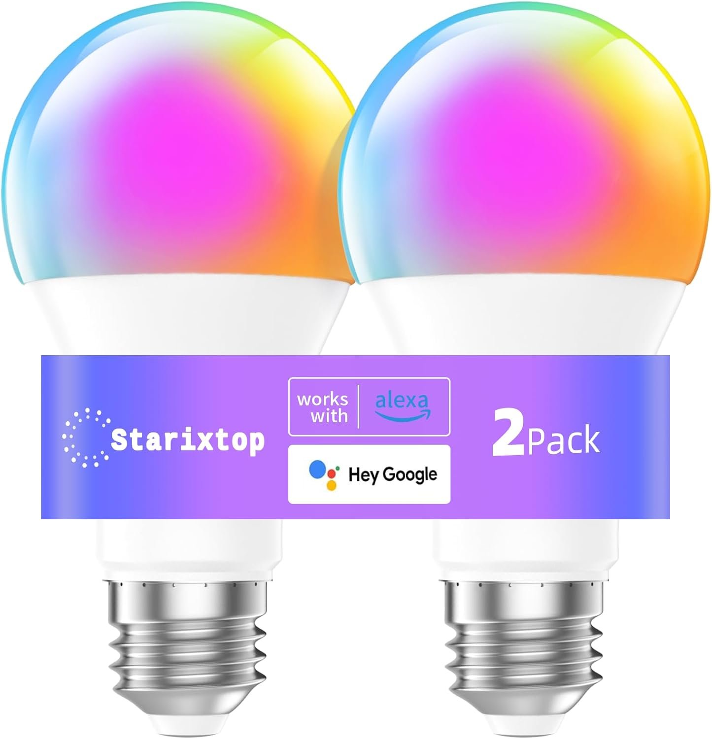 Healthy Light Source: Starixtop A19 smart light bulb owns health and comfort light mode provides gentle and soothing lighting to promote relaxation and well-being. 9W is equivalent to a 60W incandescent light bulb.