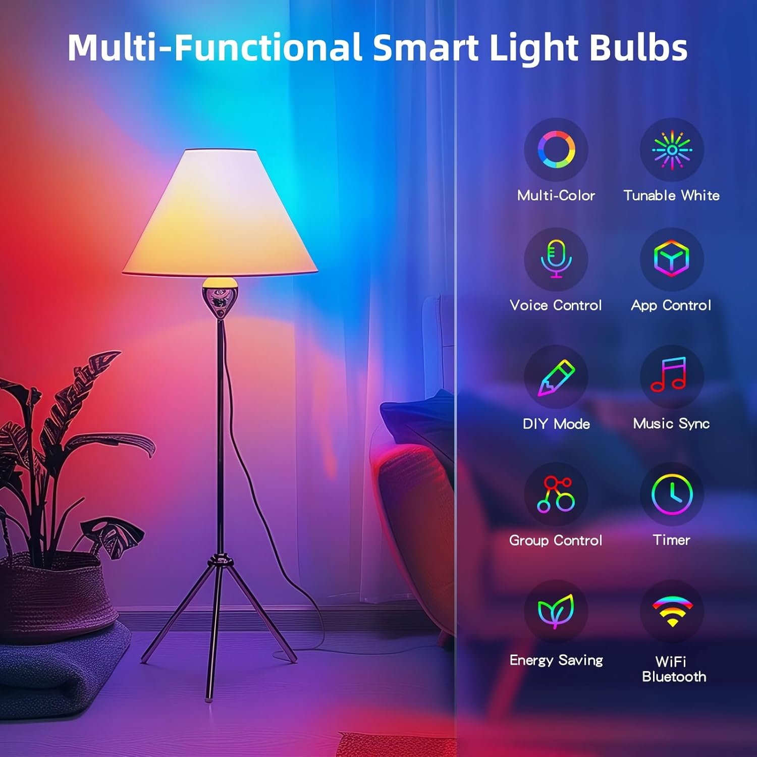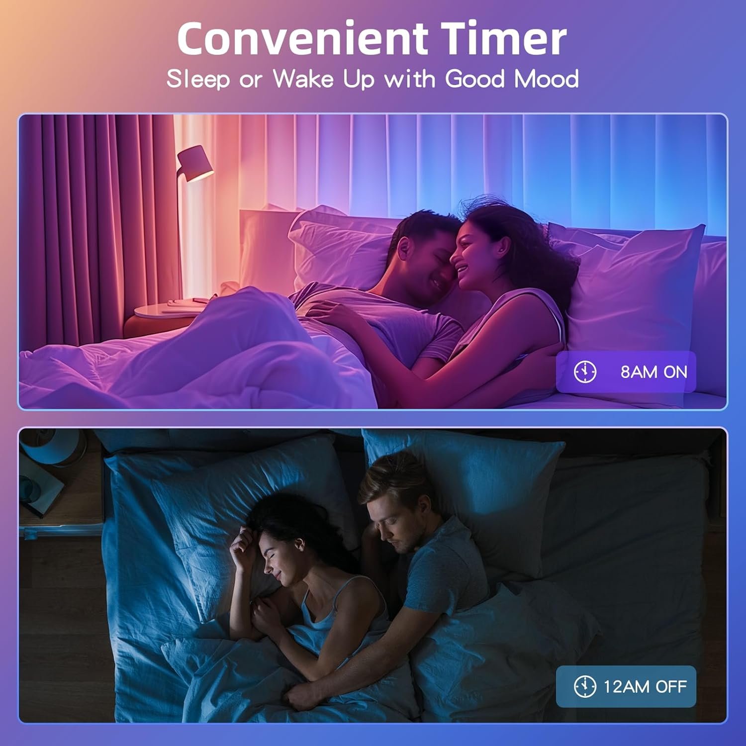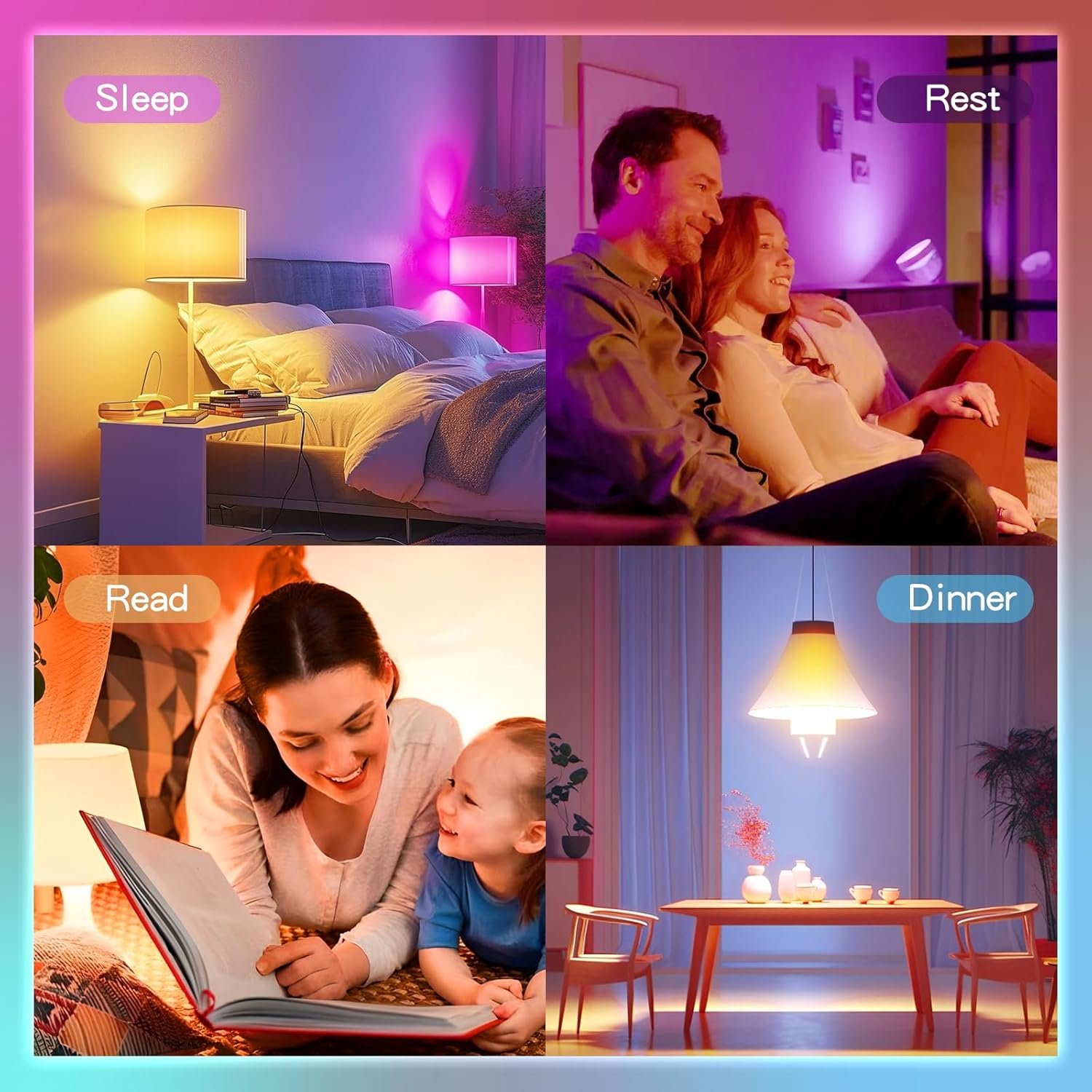 Good Mood Upon Arriving Home: Timer and schedule functions allow you to set the perfect color changing smart bulbs lighting ahead of time, so you can always come back to a welcoming and different lighting environment everyday.