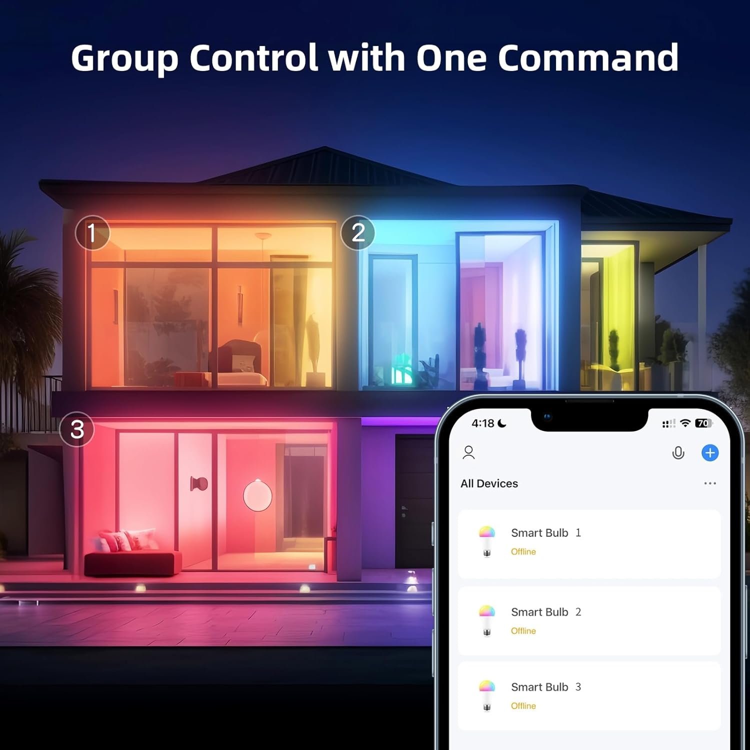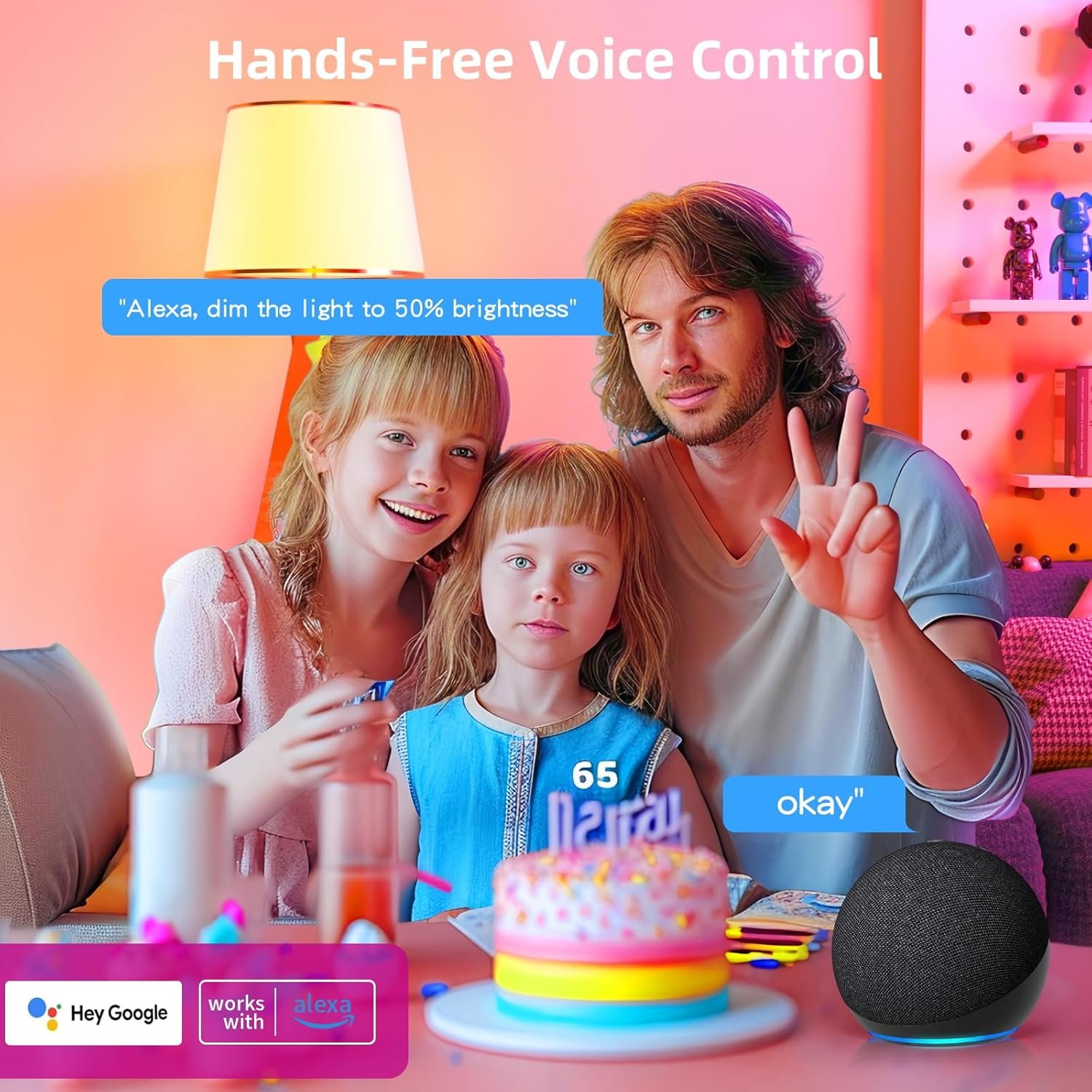 Hands Free and Group Control: Smart app control and Alexa, Google Assistant compatibility make adjusting the E26 led bulbs as easy as a touch of a button or your voice command. Group control allows to simultaneously control multiple smart led bulbs from anywhere with a stable 2.4GHz Wi-Fi.