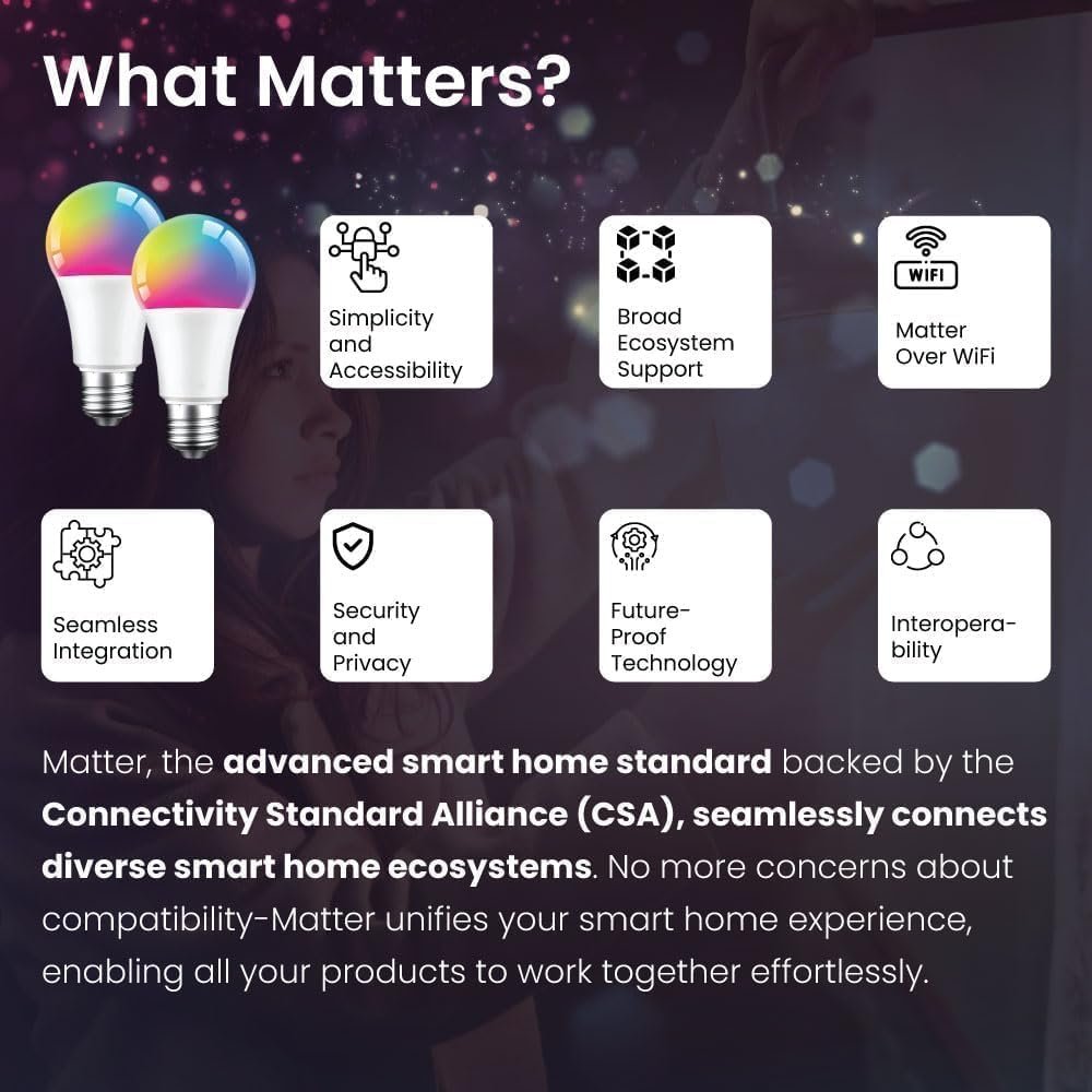WiFi Matter Control: Matter devices can work with any of the apps and hubs at the same time without requiring users to choose a single controller, platform, or app.(scan the QR code on your device using any of the Alexa/ Google home apps to connect).