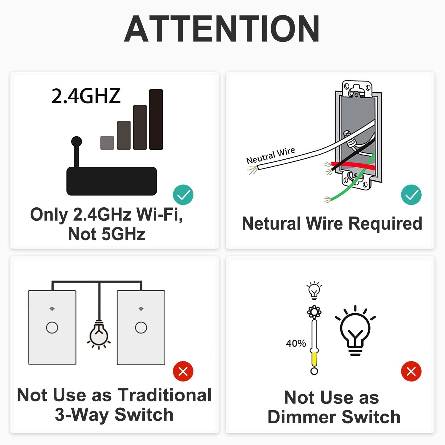 【App Remote Control】Download a free App “SmartLife” on your or smartphone, Controlling your light or other appliances through Smart Life App from anywhere. Complies with US/CA wall switch regulations, replace multi-switch seamlessly only. Neutral wire is required for the installation. Provide Quick Installation Guide to make sure install step by step easily.