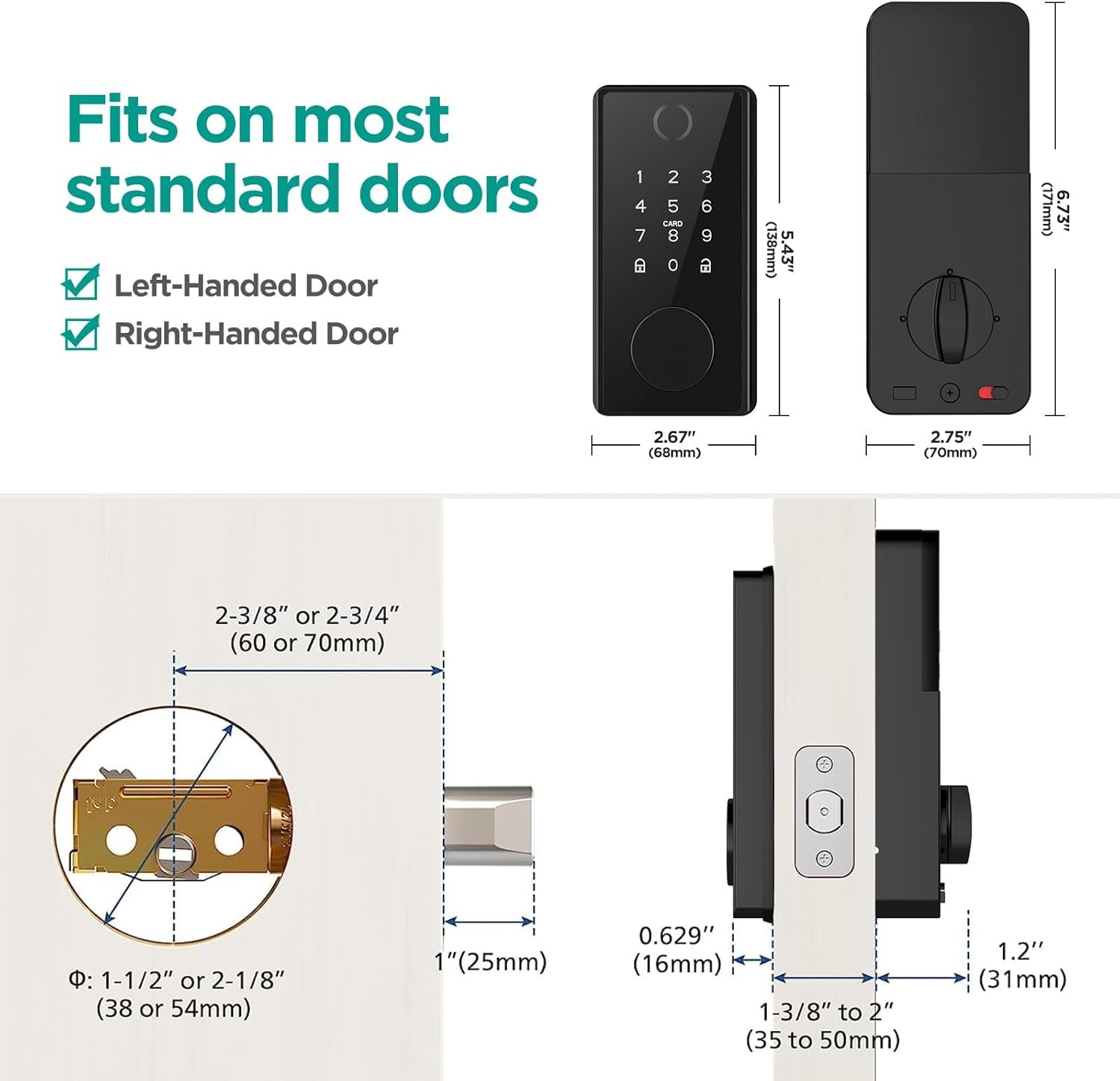 【High-Quality Service】 The keyless entry door lock is suitable for all US standard left and right doors. Smart deadbolt lock is tested to handle the comings and goings of a busy household for over 30 years. We offer lifetime customer support, 24/7 online customer service, 90-day return and exchange service, and 2-year after-sales service. If you have any problems using it, please feel free to contact us at any time.
