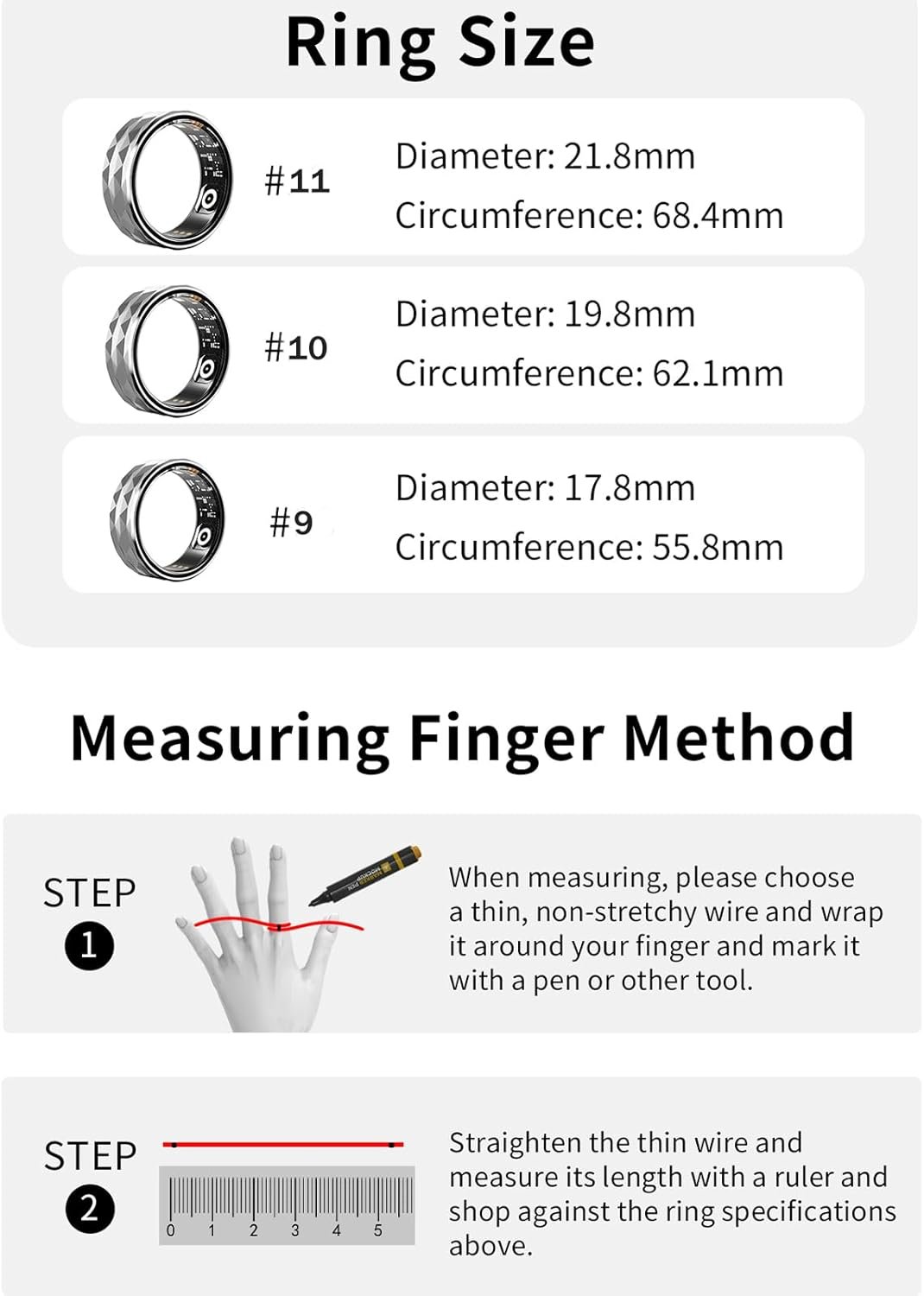 Advanced Health and Fatigue Monitoring: Equipped with cutting-edge sensors, the smart ring provides real-time heart rate and blood oxygen measurements. Additionally, it features a unique fatigue assessment tool that evaluates your physical tiredness levels, offering valuable insights to help manage your energy and prevent overexertion.
