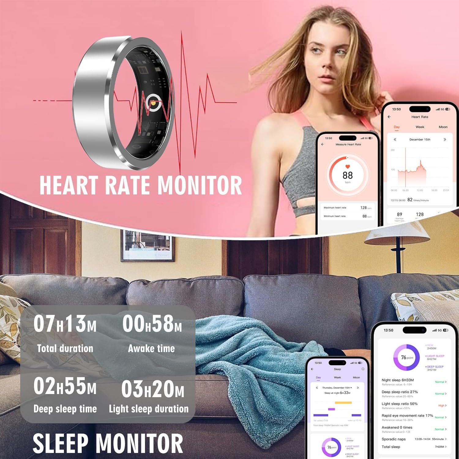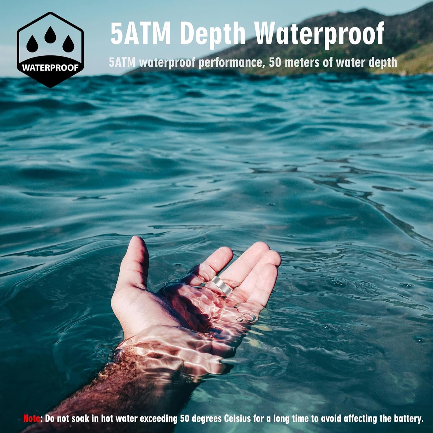 5ATM Waterproof – With a 5ATM waterproof rating, you can wear your ring while washing hands, showering, or even swimming without any worries.