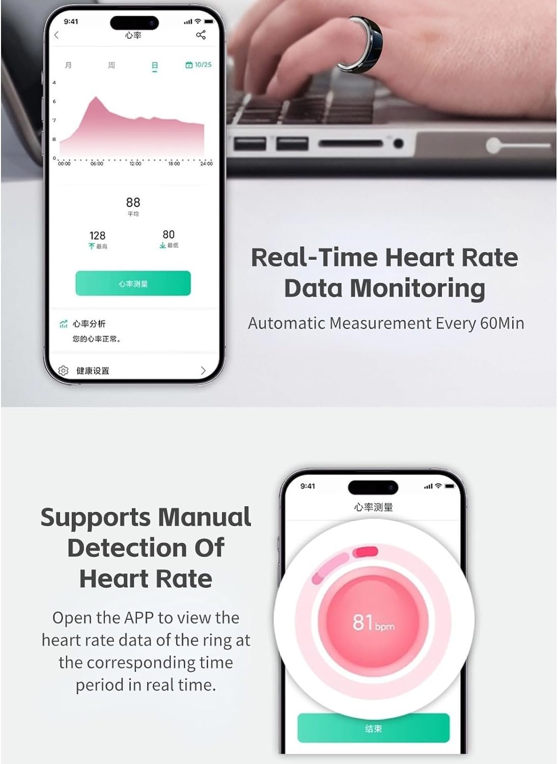 FASHION AND TECHNOLOGY COMBINED: Elegant and stylish design and made of materials such as polished ceramic, lightweight, fashionable and comfortable. And Fitness Ring adopts energy saving technology to ensure that a single can be used continuously for 7 days without interruption. APP is compatible with for Android, for iOS, convenient for you to check your data at any time.