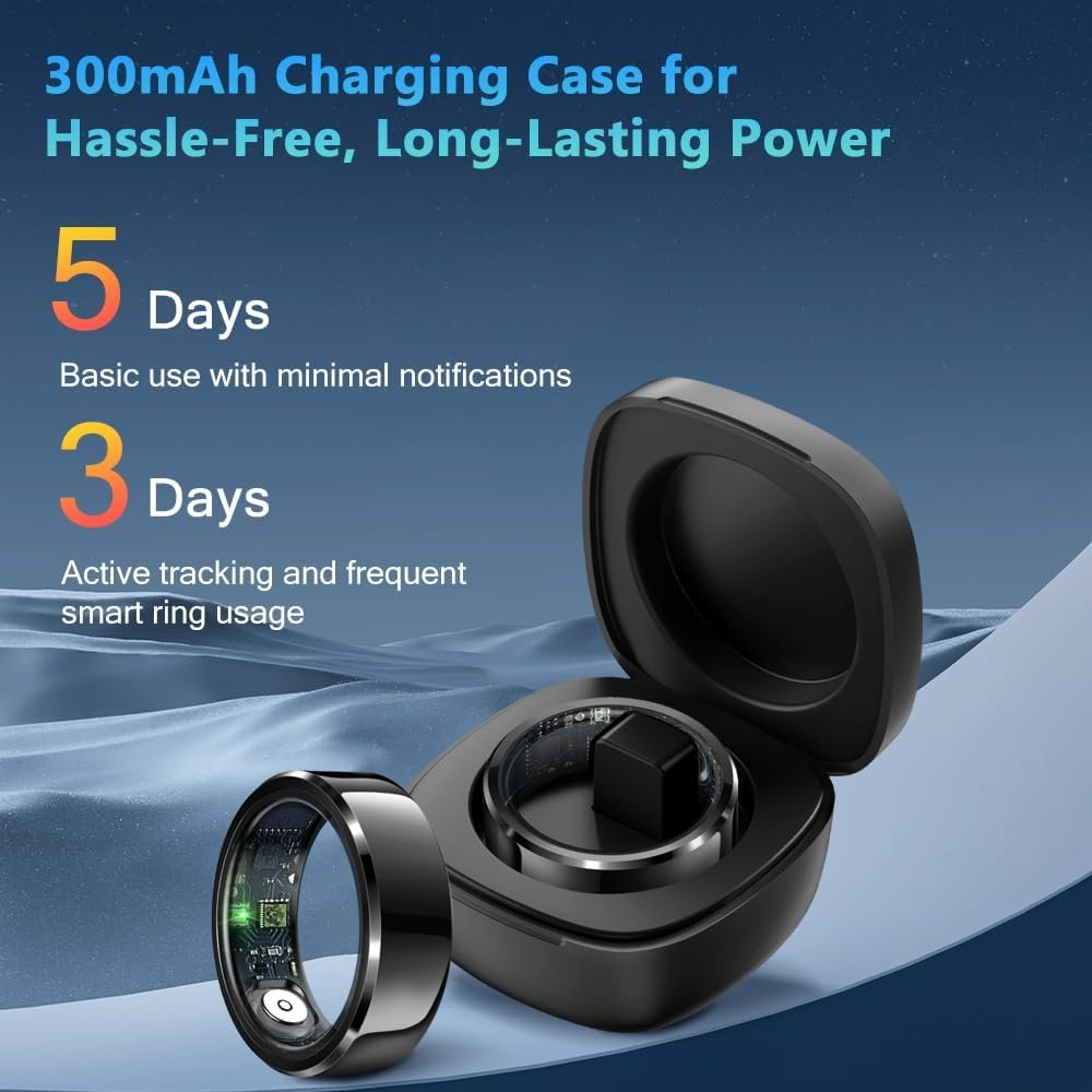 Smart Ring Health Tracker for Men Women with Charging Case, Waterproof Fitness Ring, Bluetooth Connected Health Ring, Activity Tracker Records Steps Distance Calories, Compatible with Android & iOS