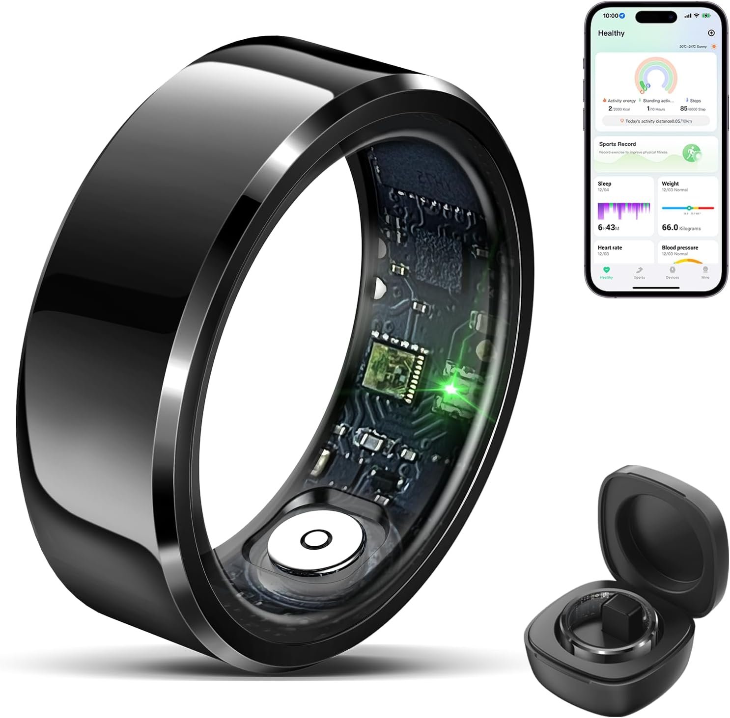Be the first to review “Smart Ring Health Tracker for Men Women with Charging Case, Waterproof Fitness Ring, Bluetooth Connected Health Ring, Activity Tracker Records Steps Distance Calories, Compatible with Android & iOS”