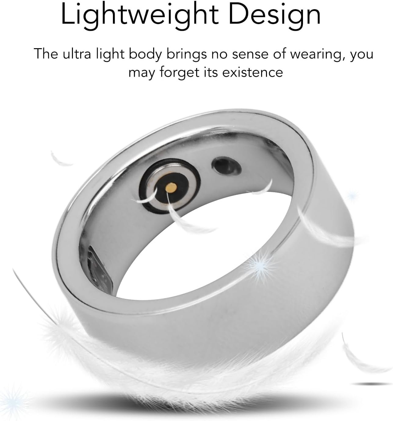 MULTI FUNCTIONAL: This smart ring offers various functions, allowing you to monitor your heart rate, body temperature, sleep quality, and track your steps, providing constant insights into your overall health.